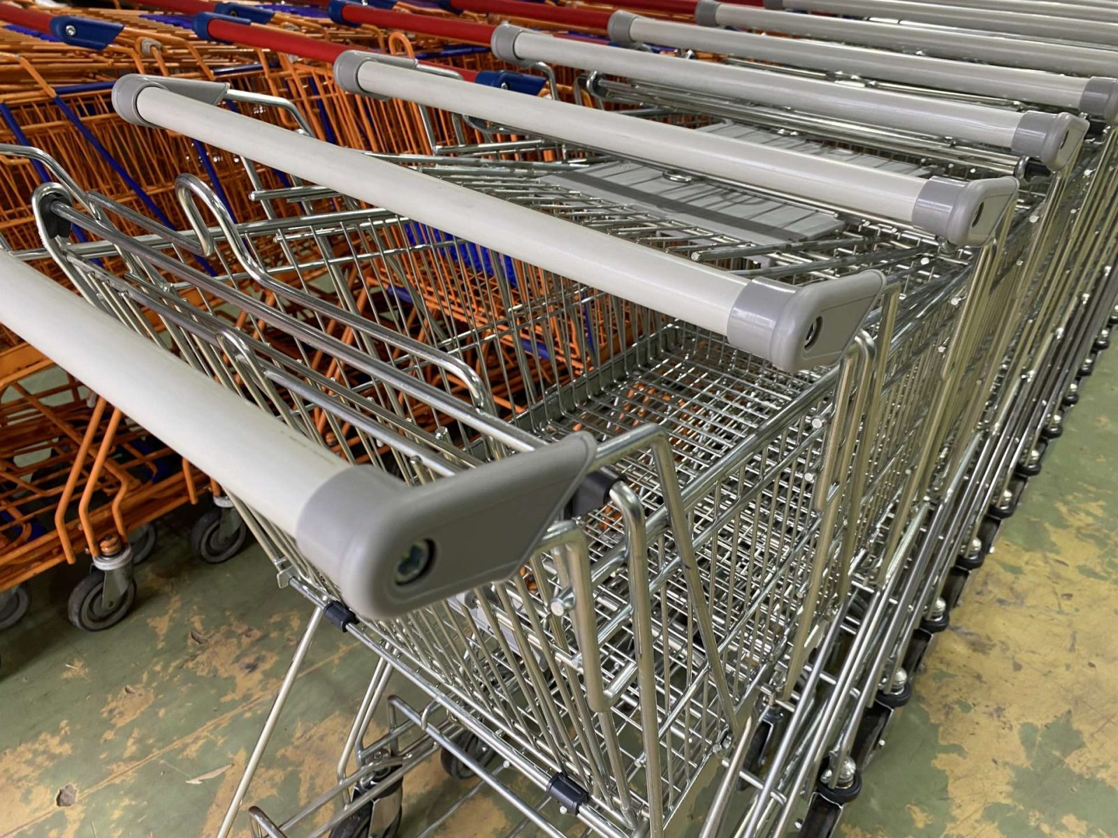 Felújított Wanzl D75RC bevásárlókocsi szürke műanyagokkal