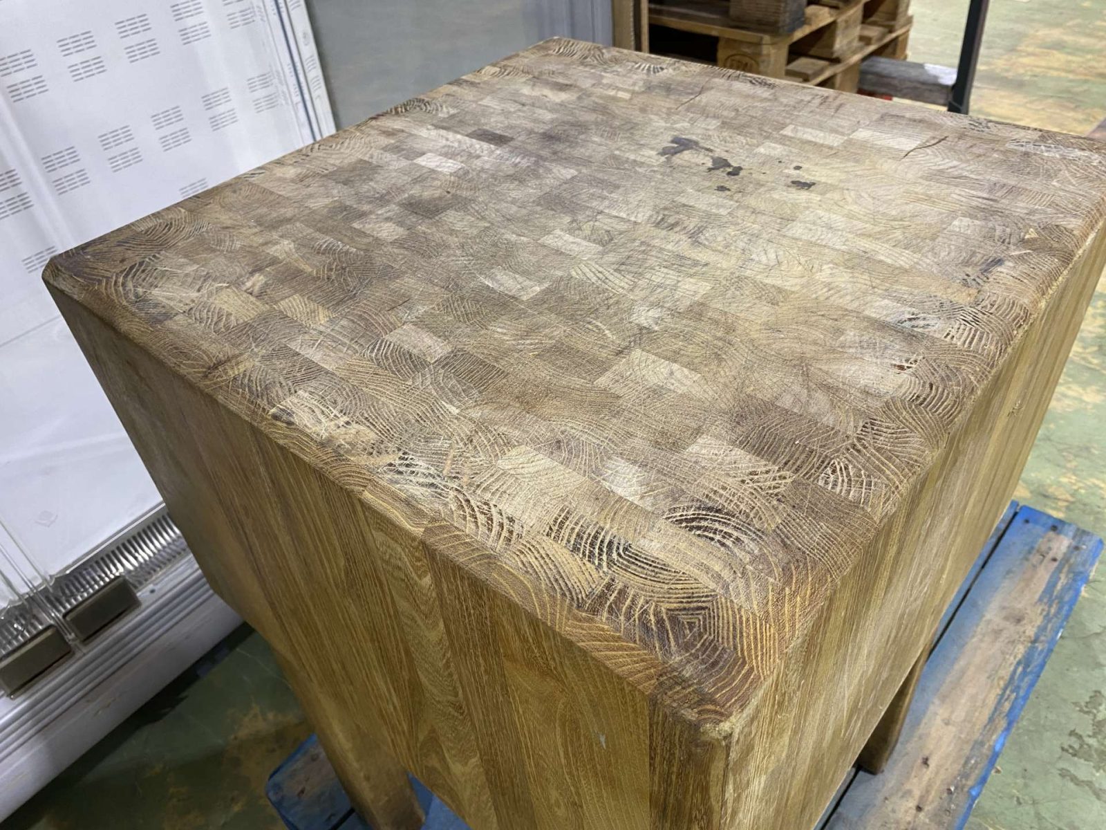 Tömör tömbösített fa hústőke. 60*60*90 cm. Gyalulható, esztétikus, masszív kivitel!