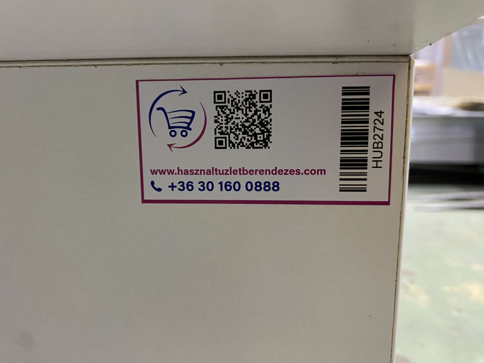 Hentes,- vagy élelmiszerüzletbe ebonitlapos munkaasztal, lábazati szekrény, köztes polccal. 60*45*84 cm. ( Szélesség*mélység*magasság)