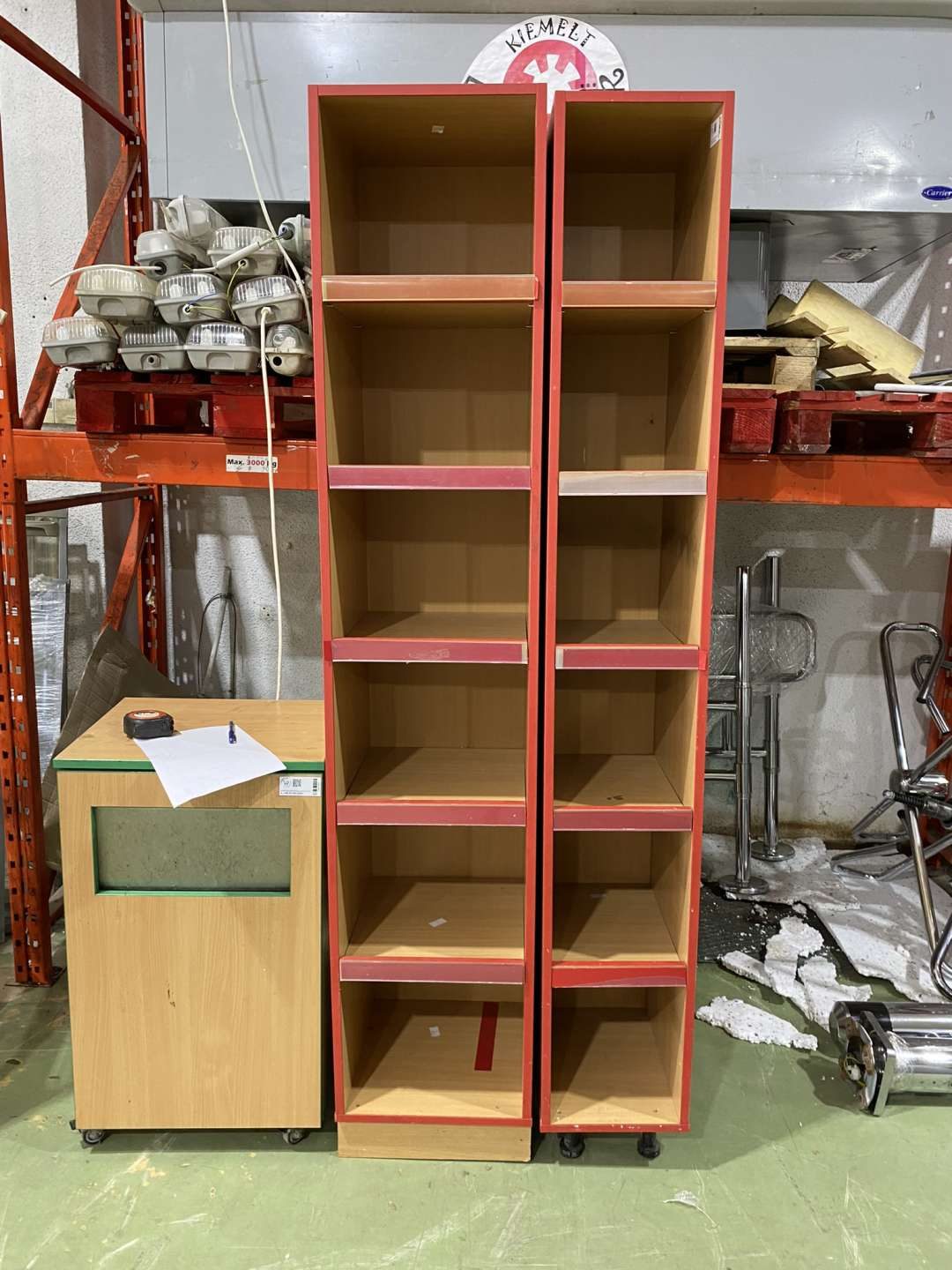 Egyedi gyártású tárolópolc, dekor bútorlapból, elsősorban az oszlopok éltal tagolt hűtőpsorok és polcsorok áthidalására.