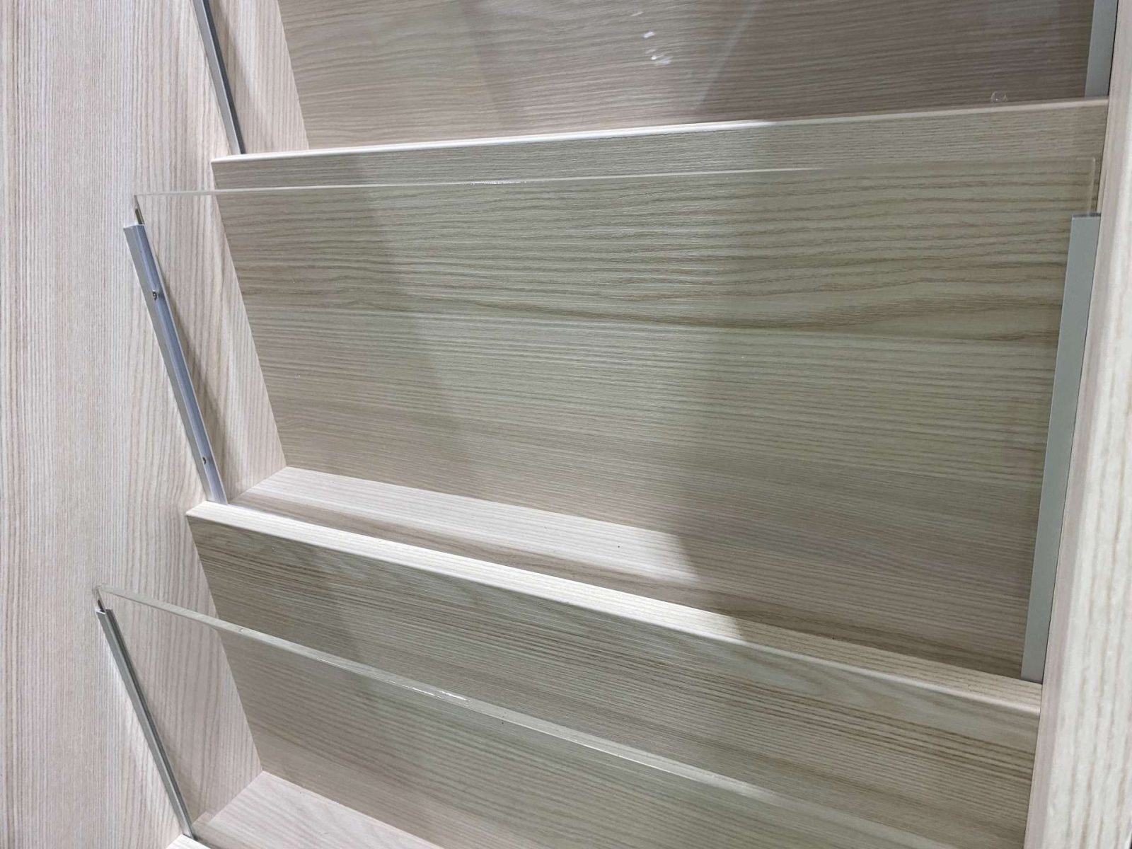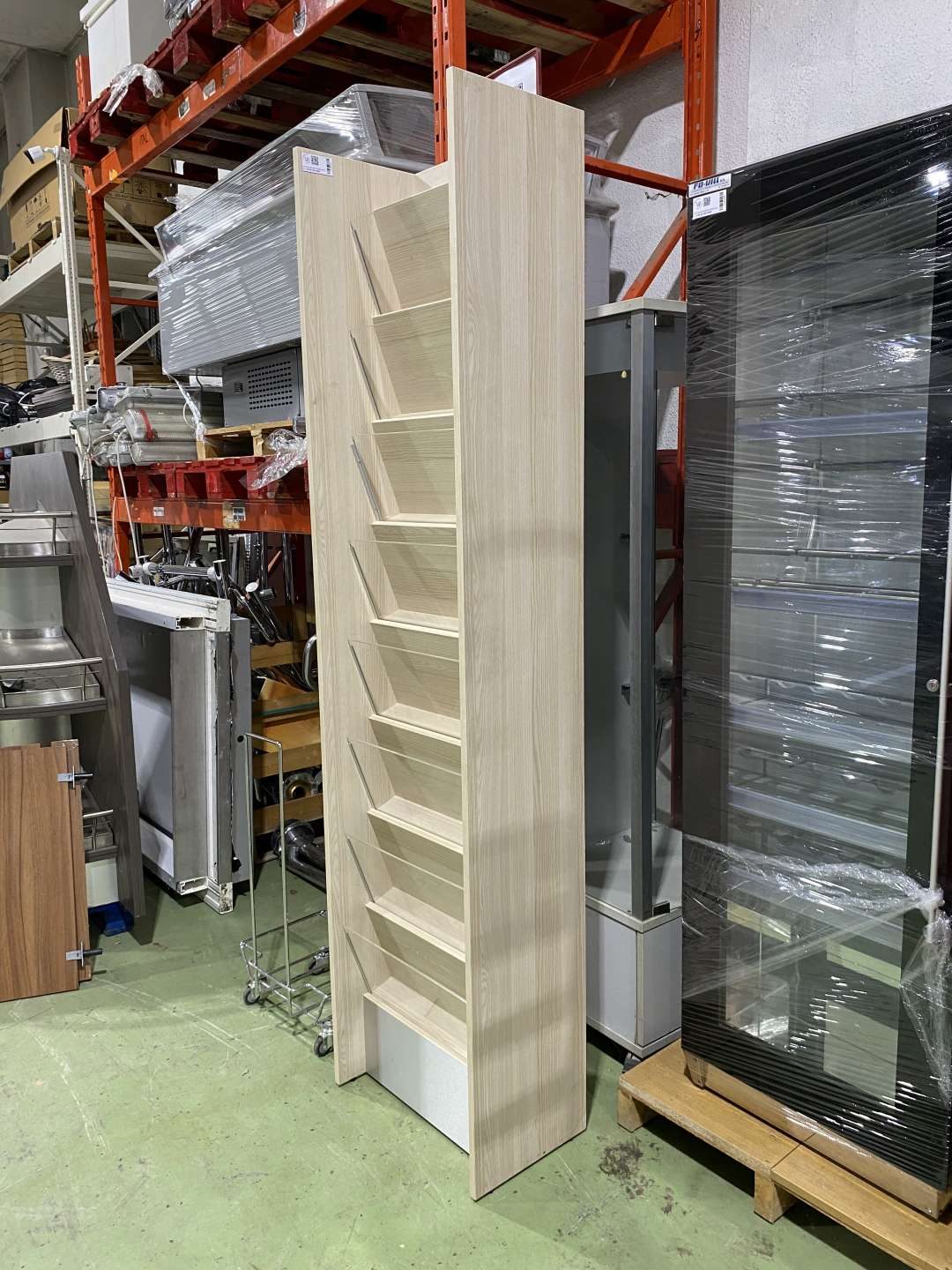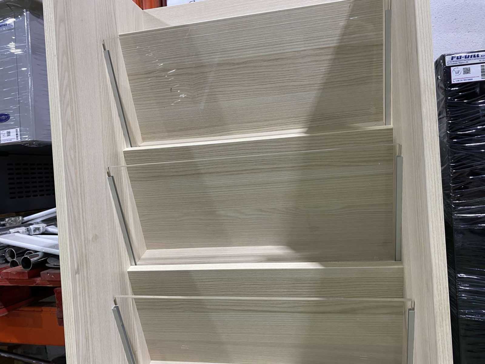 Újszágos állvány bútorlapból. 55*35*205 cm ( Szélesség*magasság*mélység) Padlóra, vagy faliállványra. 8 sorban helyezhetőek el rajta újságok, könyvek. Minden polc döntött és rendelkezik víztiszta plexi kidőlésgátlóval.