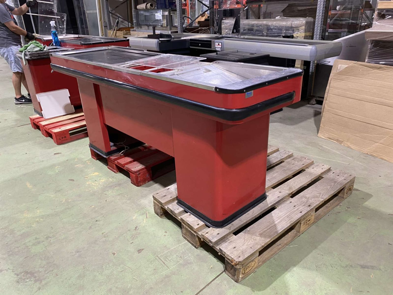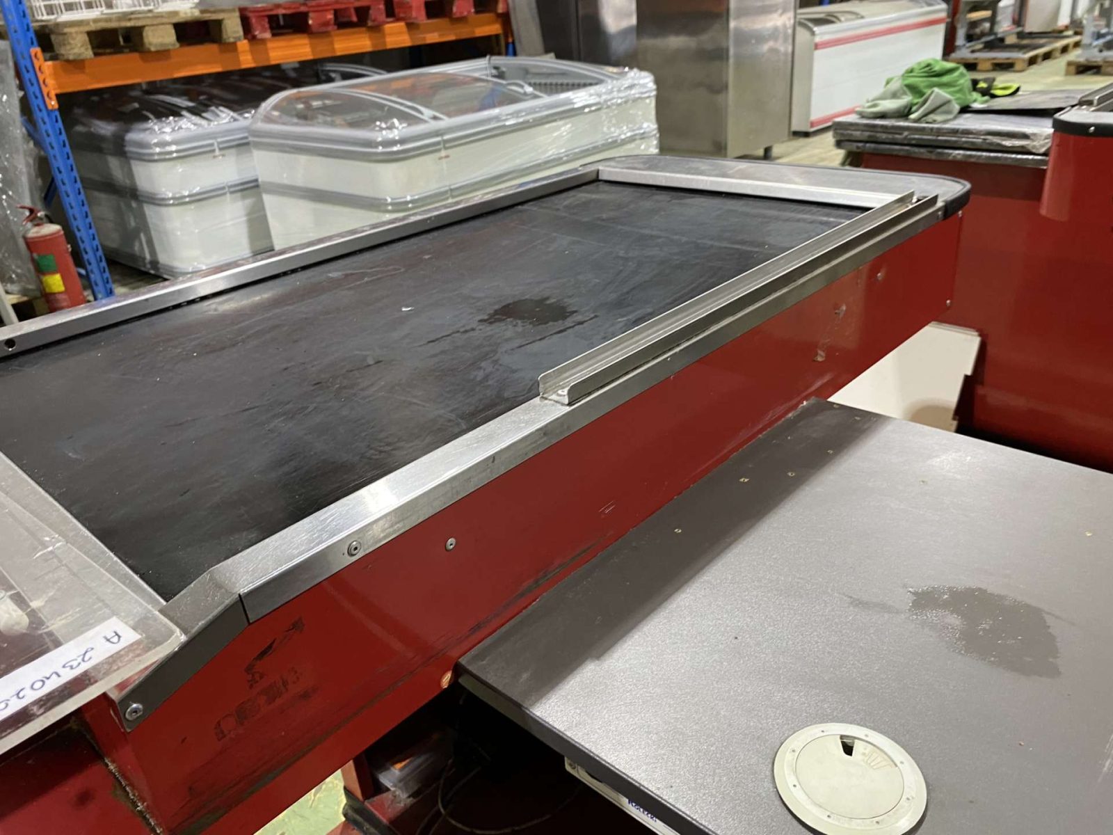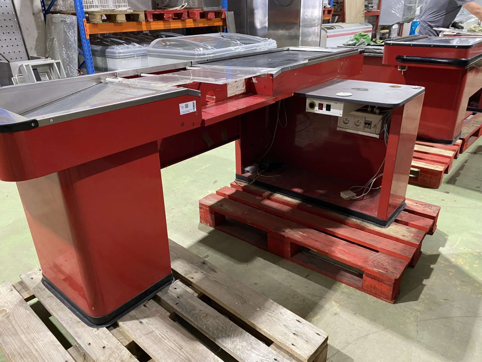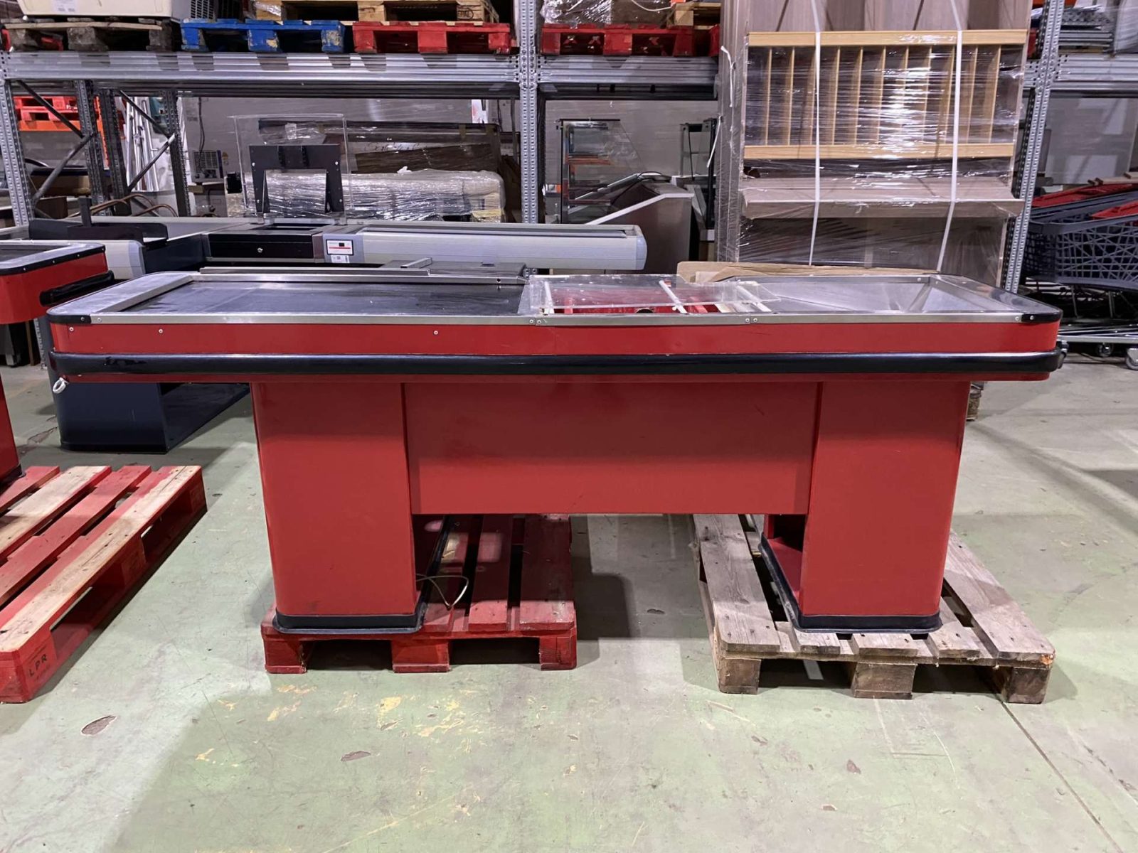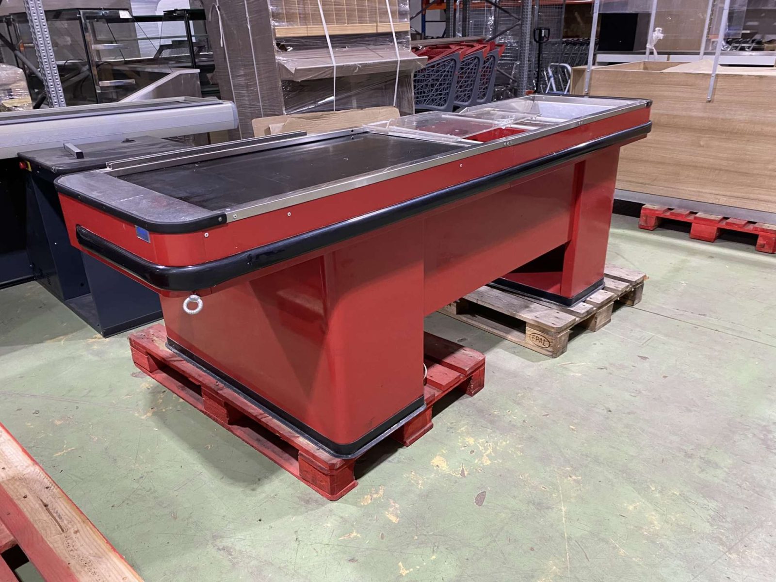 Kasszaasztal, futószalagos (100 cm) - Jobbos (szimpla elpakoló), lábpedálos és szenzoros vezérléssel.