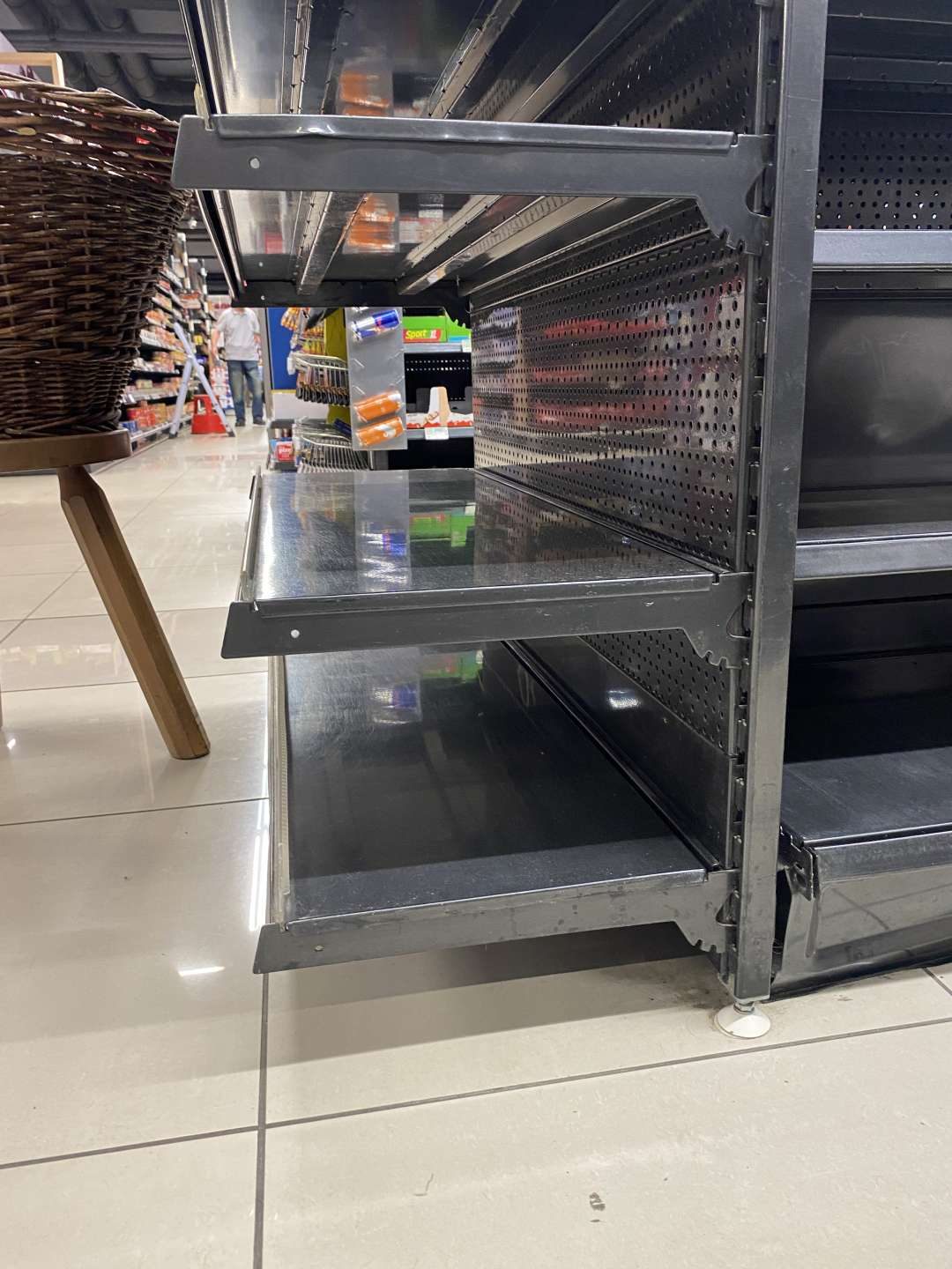 Gondola 47-es alappolcal és lábbal szerelt, felülpolcozása 37-es. Kasszaállványonként 14 darab polc áll rendelkezésre. Végzáró teljes egészében, míg a gondolák részben bliszteres hátfalakkal szereltek. ( Bliszterkampó nélkül.) Minden polchoz új víztiszta polcsínt adunk.