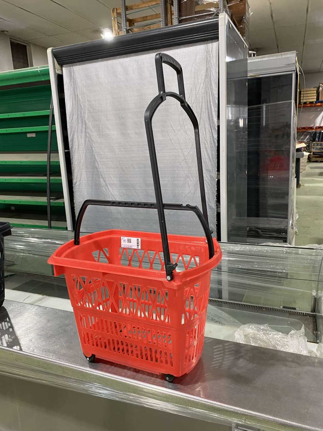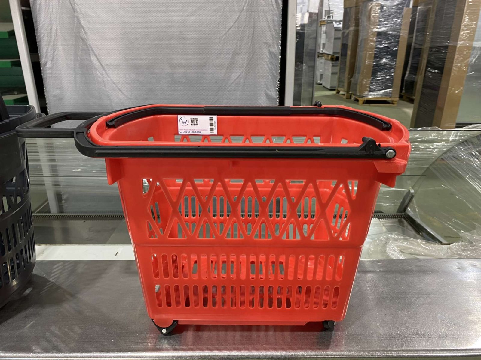 Új bevásárló kosár piros 28 literes gurulós