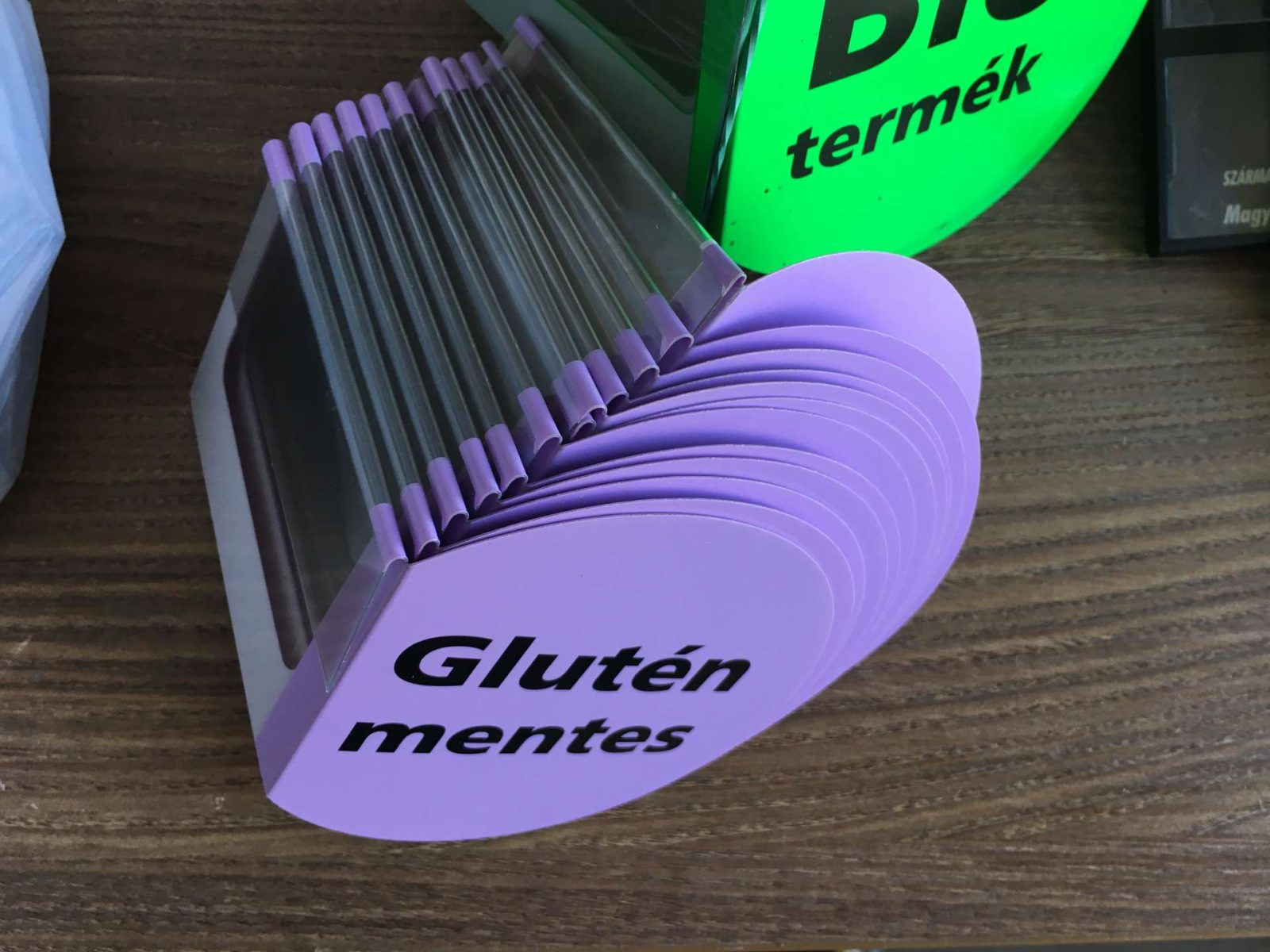 3 színben és felírattal. (biotermék, gluténmentes, laktózmentes) 35 Ft/ darab + ÁFA