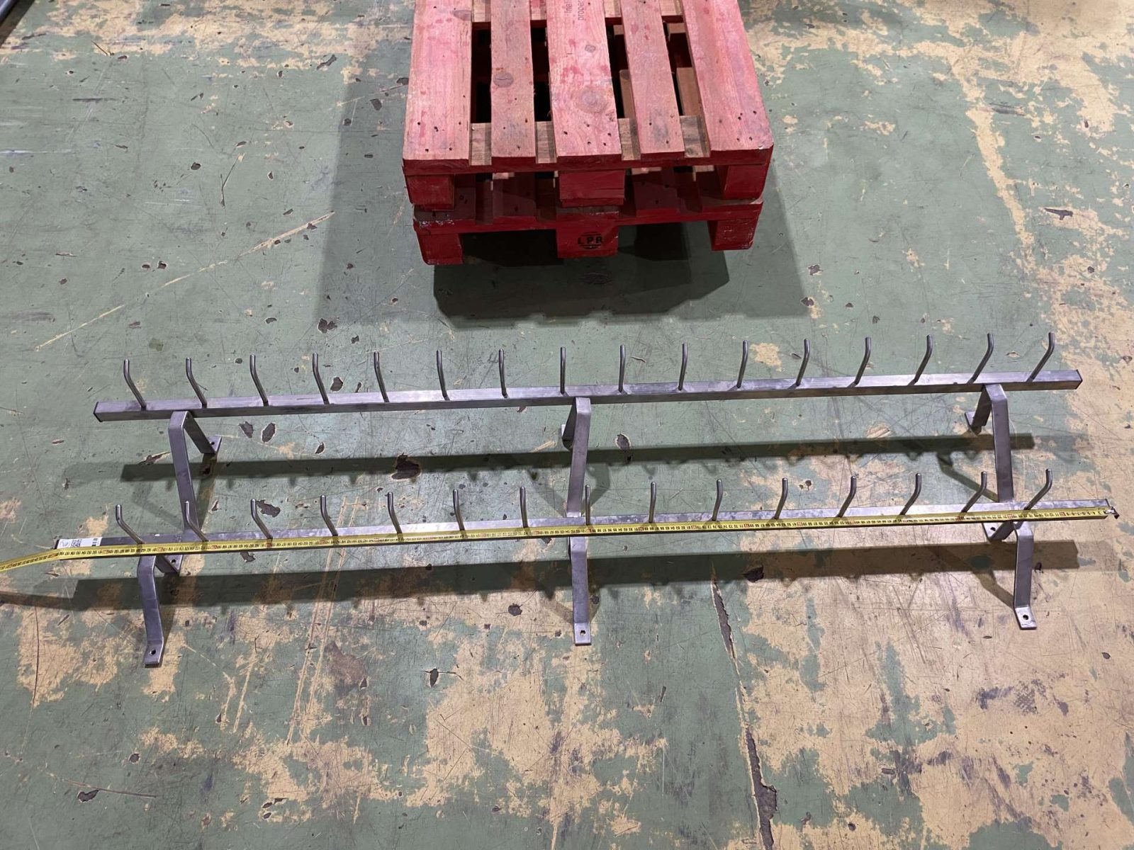 Falra szerelhető kétszintes horogsor, mely első sorban pult mögötti füstöltáruk tárolására/ bemutatására alkalmas. Hossza 200 cm, tetszés szerint méretre vágható. Egy darab készleten. Darabár: 24.900 Ft + ÁFA