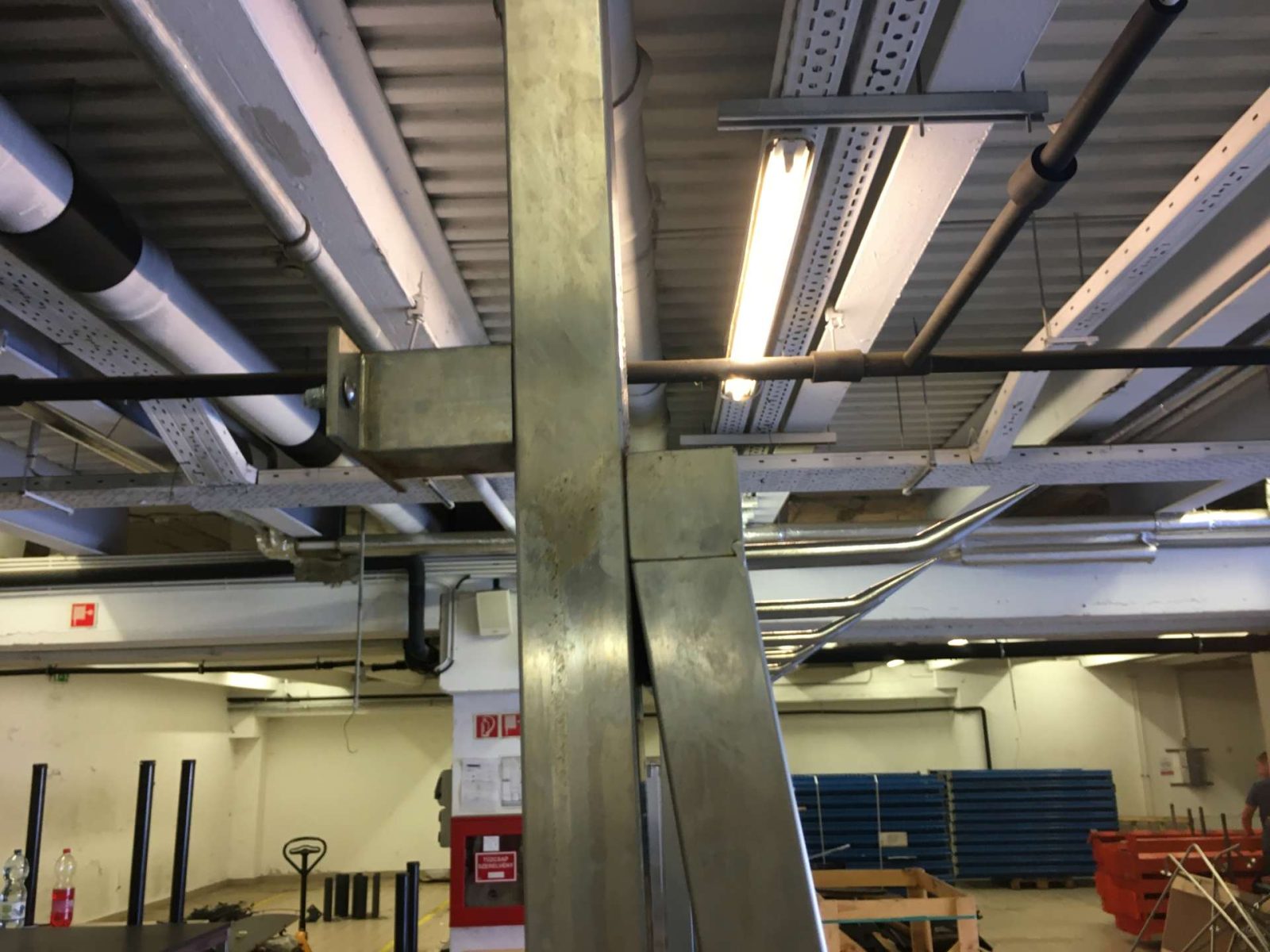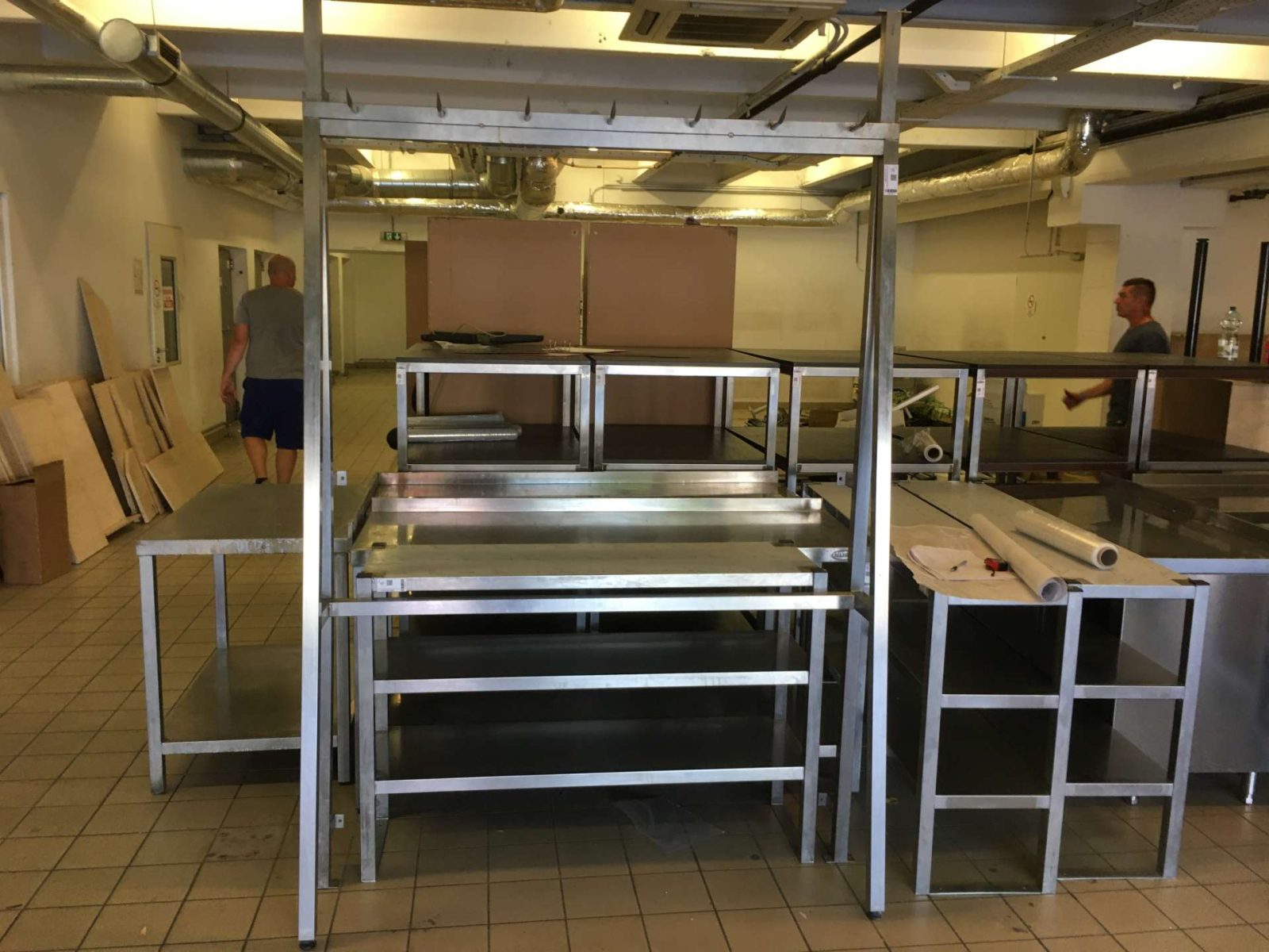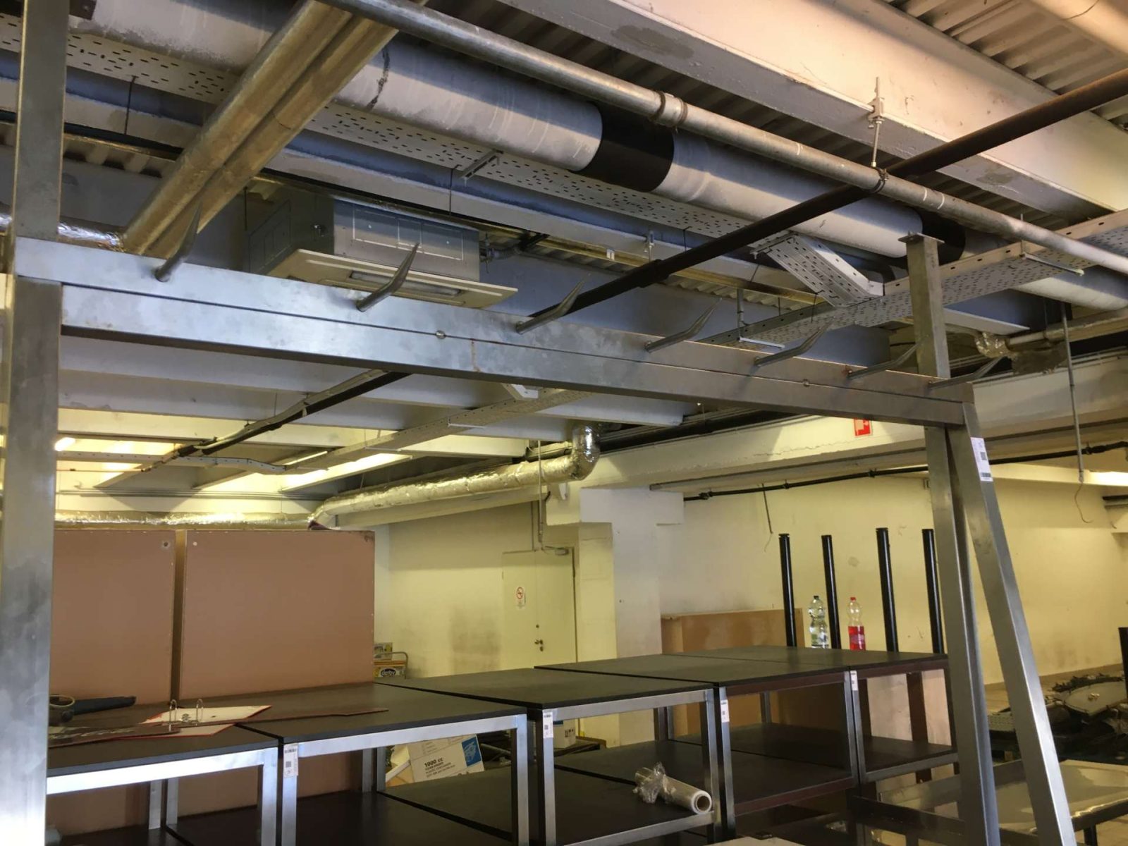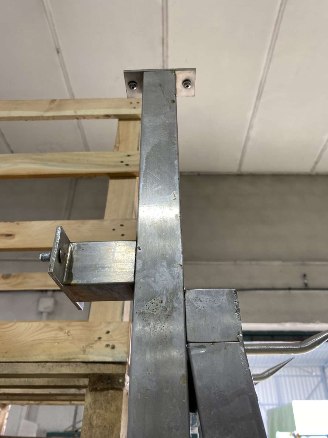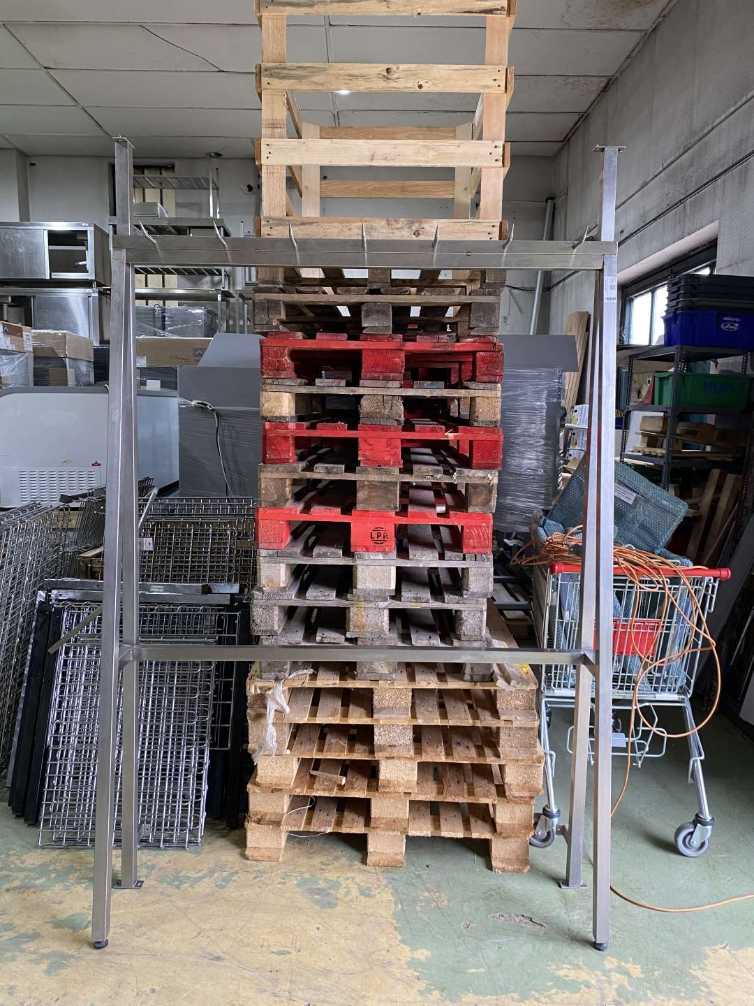 A kampók felfele hajló hegyes kampók félsertés, negyed marha tárolásához kialakítva.