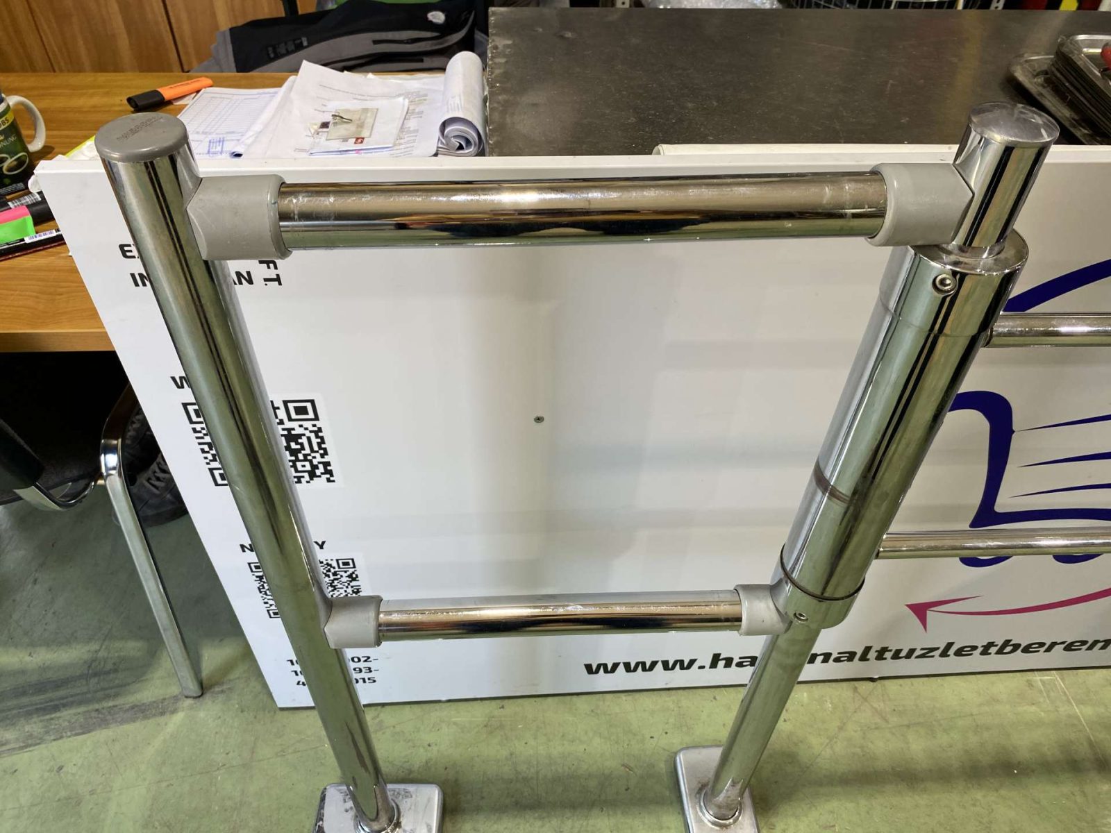 Egykaros CP króm mechanikus vevőbeengedő kapu. 102 cm széles, 110 cm magas oszloppal. Padlóhoz rögzíthető. Nyitókar hossza fix. + Kiegészítő elem 50 cm. Teljes szélesség 102+50 cm.