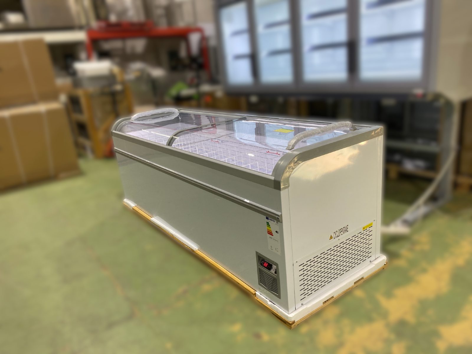 Új fagyasztóláda készletről, 12 hónap telephelyi garanciával.