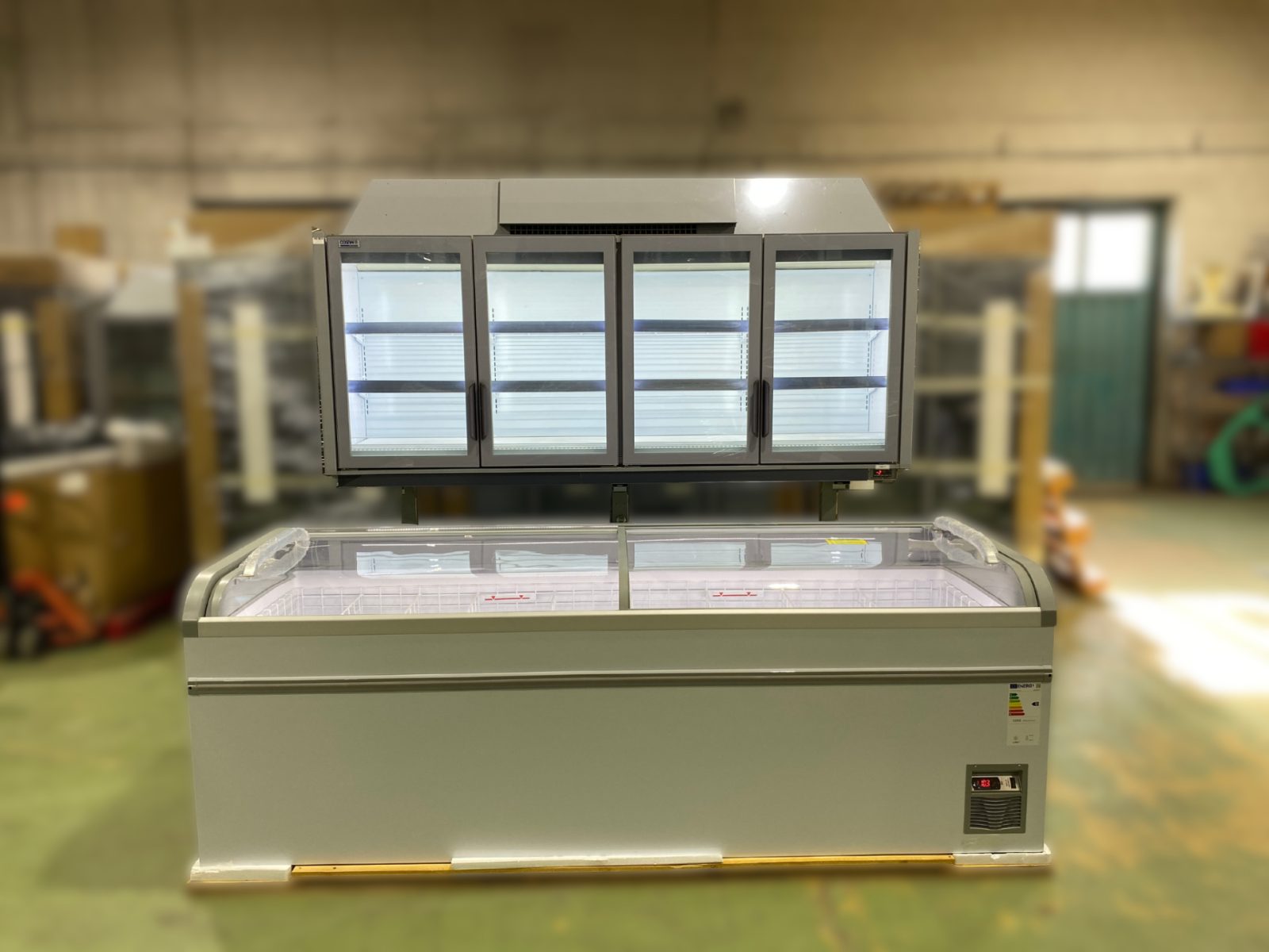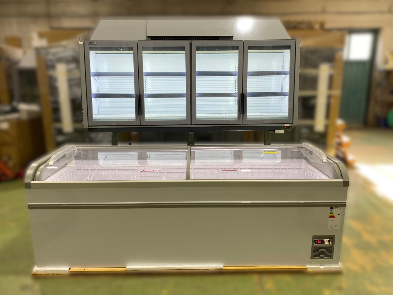 Energiatakarékos Új Hiron fagyasztóláda 2500 mm HR-25E-H + EPTA COSTAN Sound Top 2500 mm fagyasztóvitrin szettben, 12 (új) illetve 6 (használt) hónap telephelyi (taksonyi) garanciával.