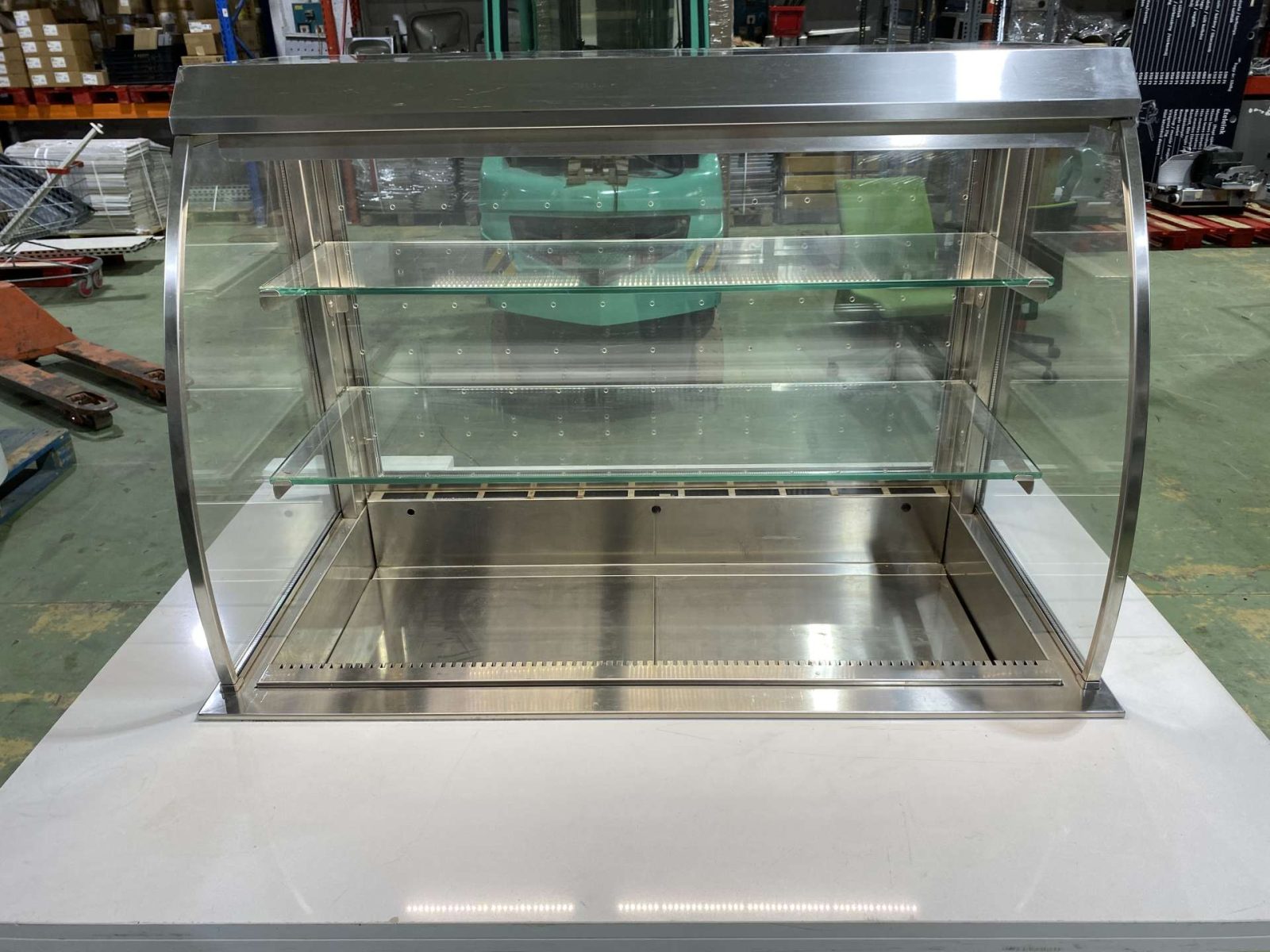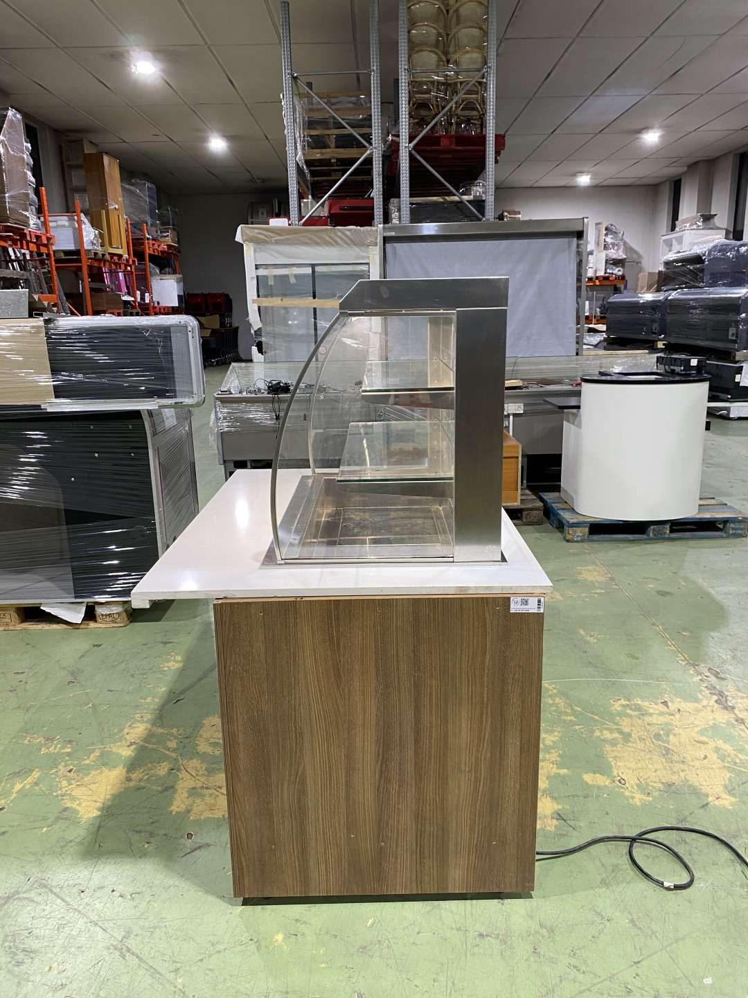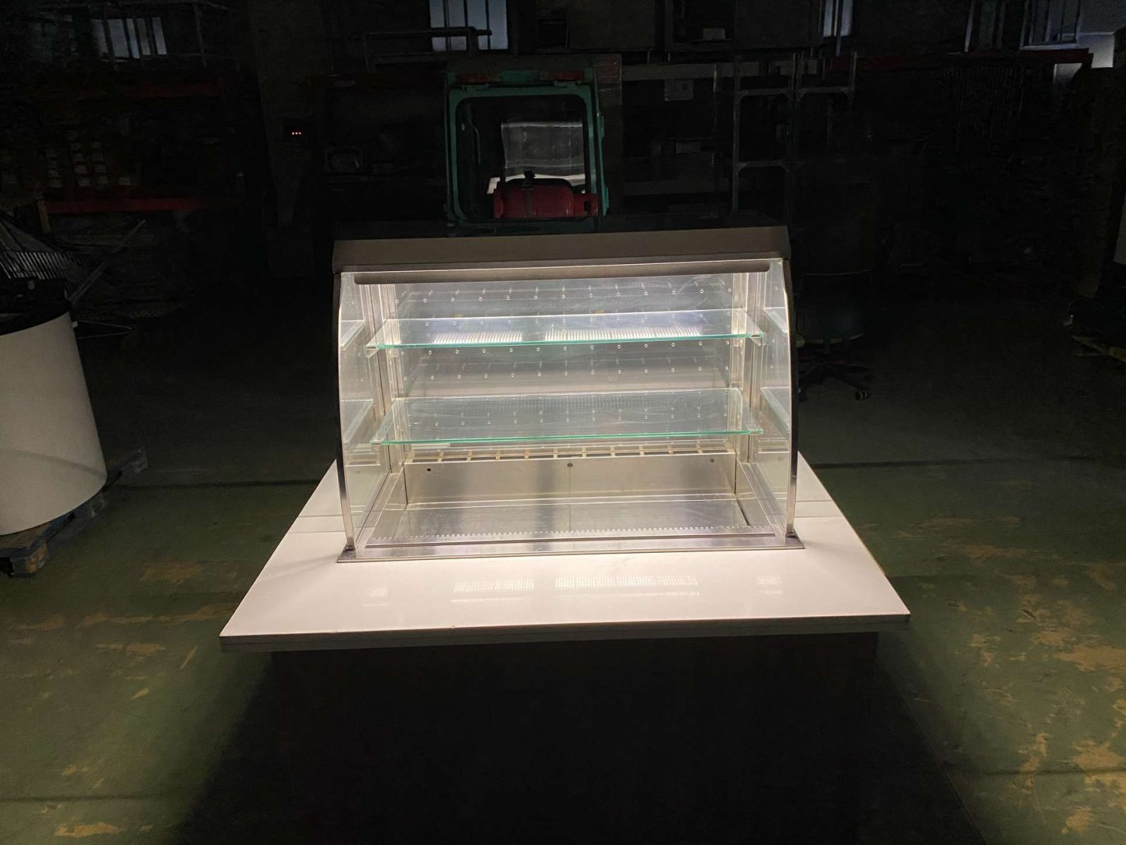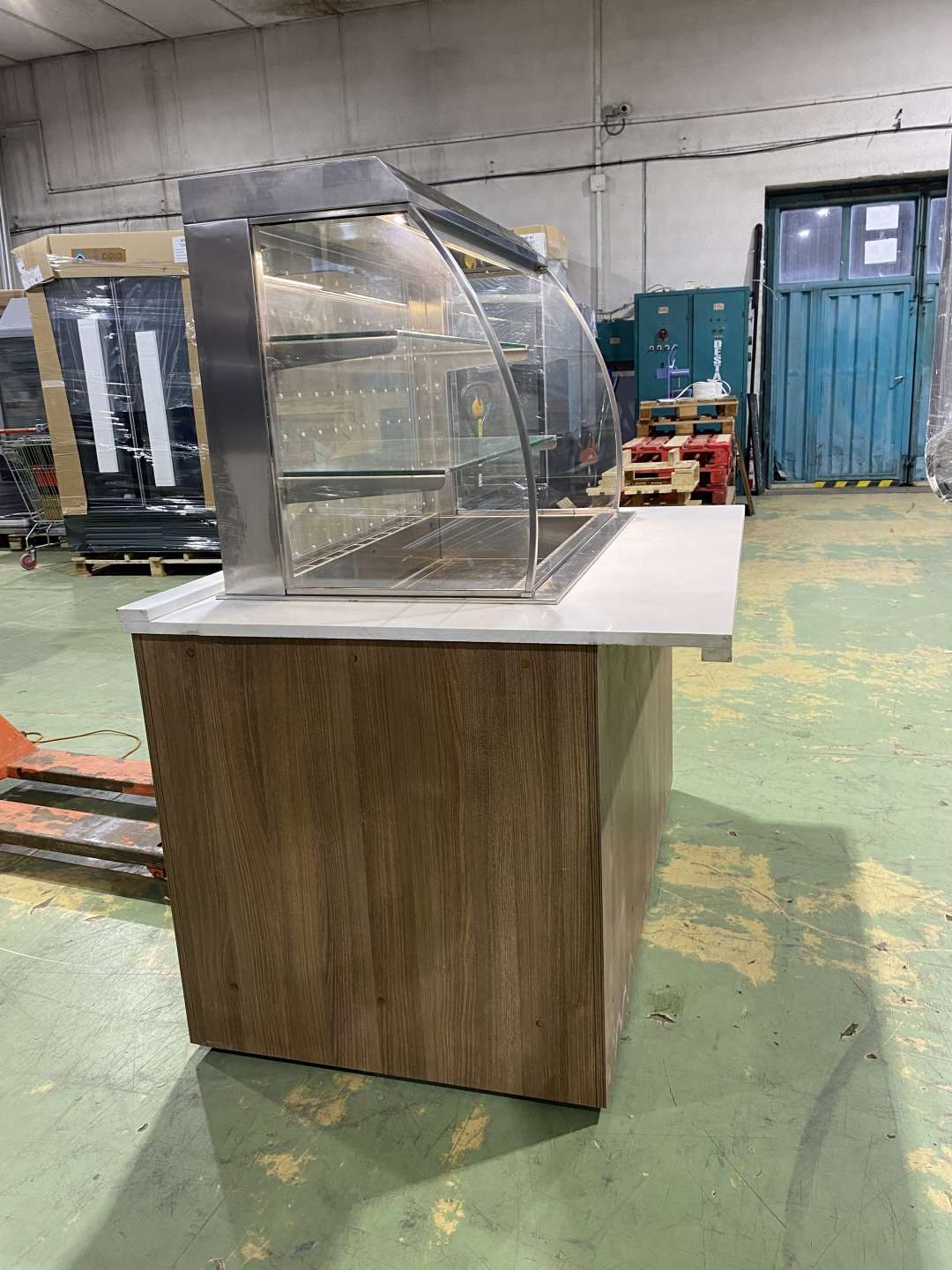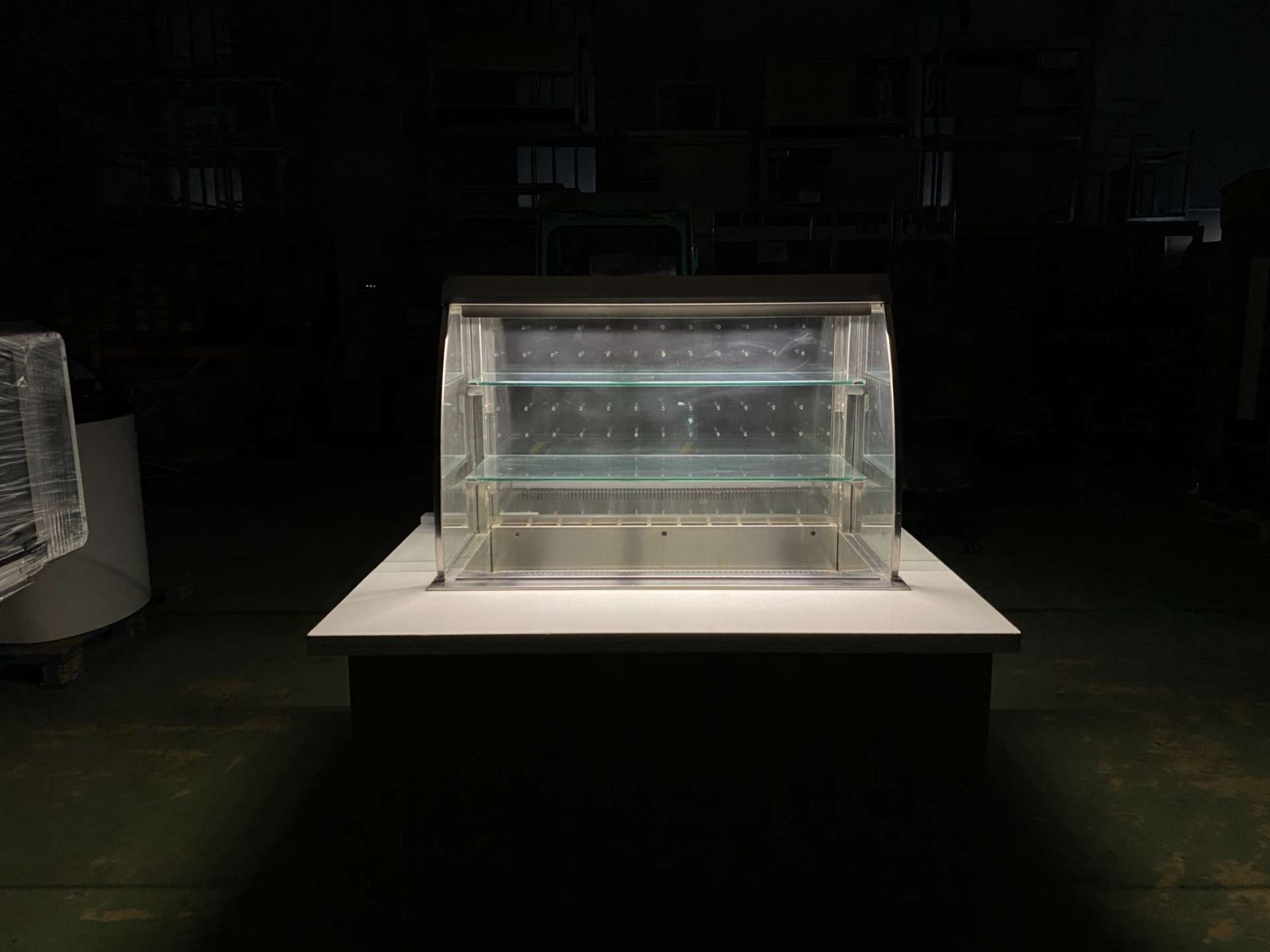 Hűtött medencés vitrin exkluzív pultba építve. H=160. Az ár magában foglalja a rozsdamentes asztalvázat, a fehér Technistone műkő fedlapot, a vitrint és a vitrin gépészetét. Igény szerint fronburkolatot is adjuk. A berendezés három oldalról zárt (üveg oldalfalak, plexi hátfal) elöl nyitott. Automaitkus leolvasztással, digitális hőmérsékletkijelzéssel, 3 szintes, beépített világítással, hűtési tartomány: +3/+8 C. Üzemképesen, letakarítva kerül átadasra.