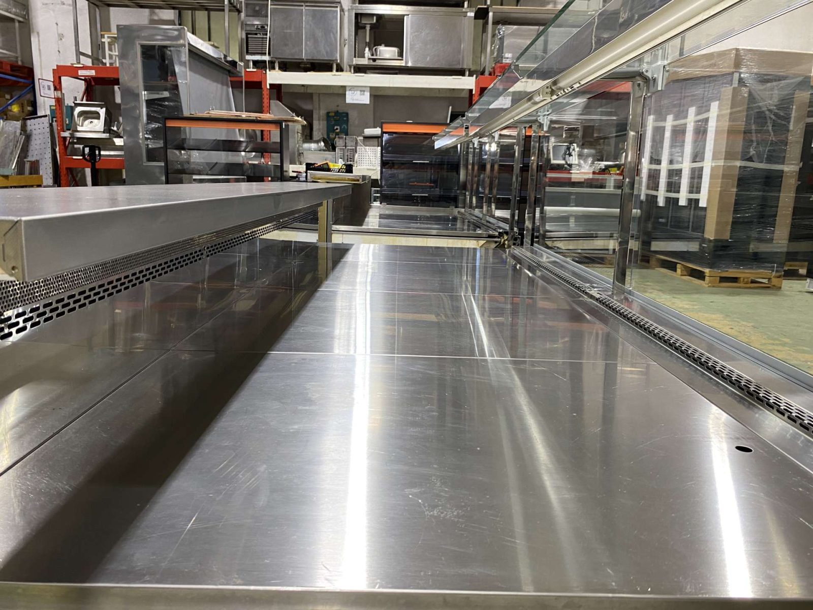 Telepített aggregátoros, azaz, kalorikus gépészet nélküli kivitel. Pultvonal mélysége 110 cm. Minden pultelem alsótárolós kivitelű, rozsdamentes belsővel, beépített felső világítással.
