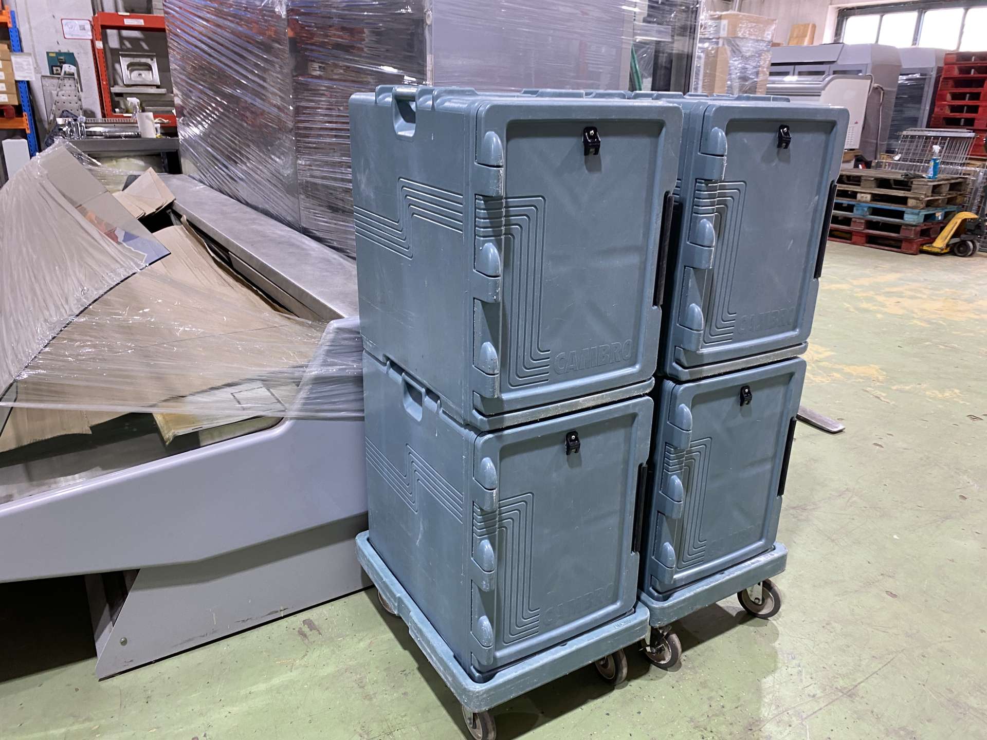 2 darab Cambro szigetelt élelmiszerszállító konténer kocsival, szettben