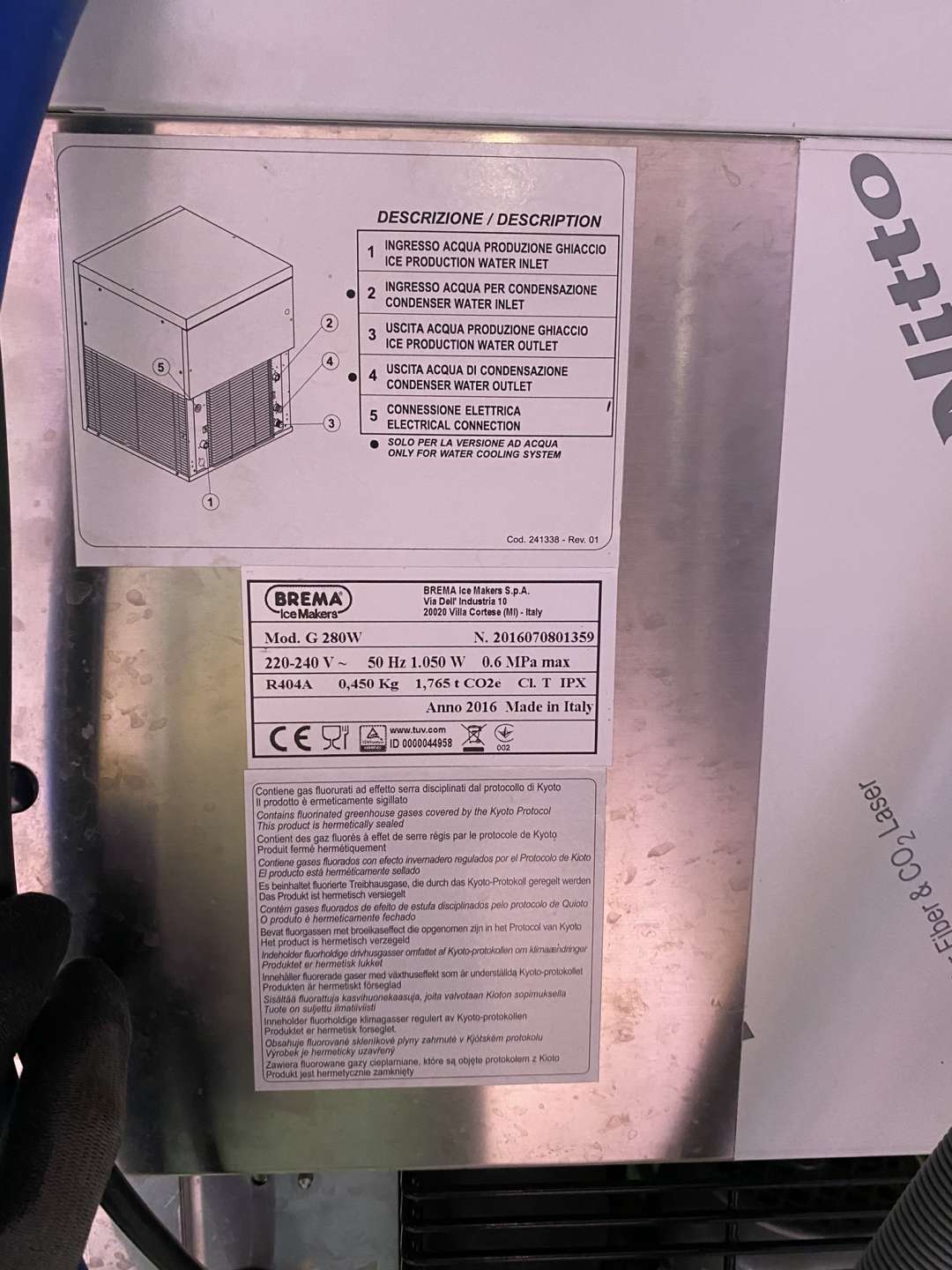 Brema G 280W jéggép, alsó tároló tartállyal, 1050W, napi 320 kg kapacitás. Eladási ár: 700.000 Ft + ÁFA