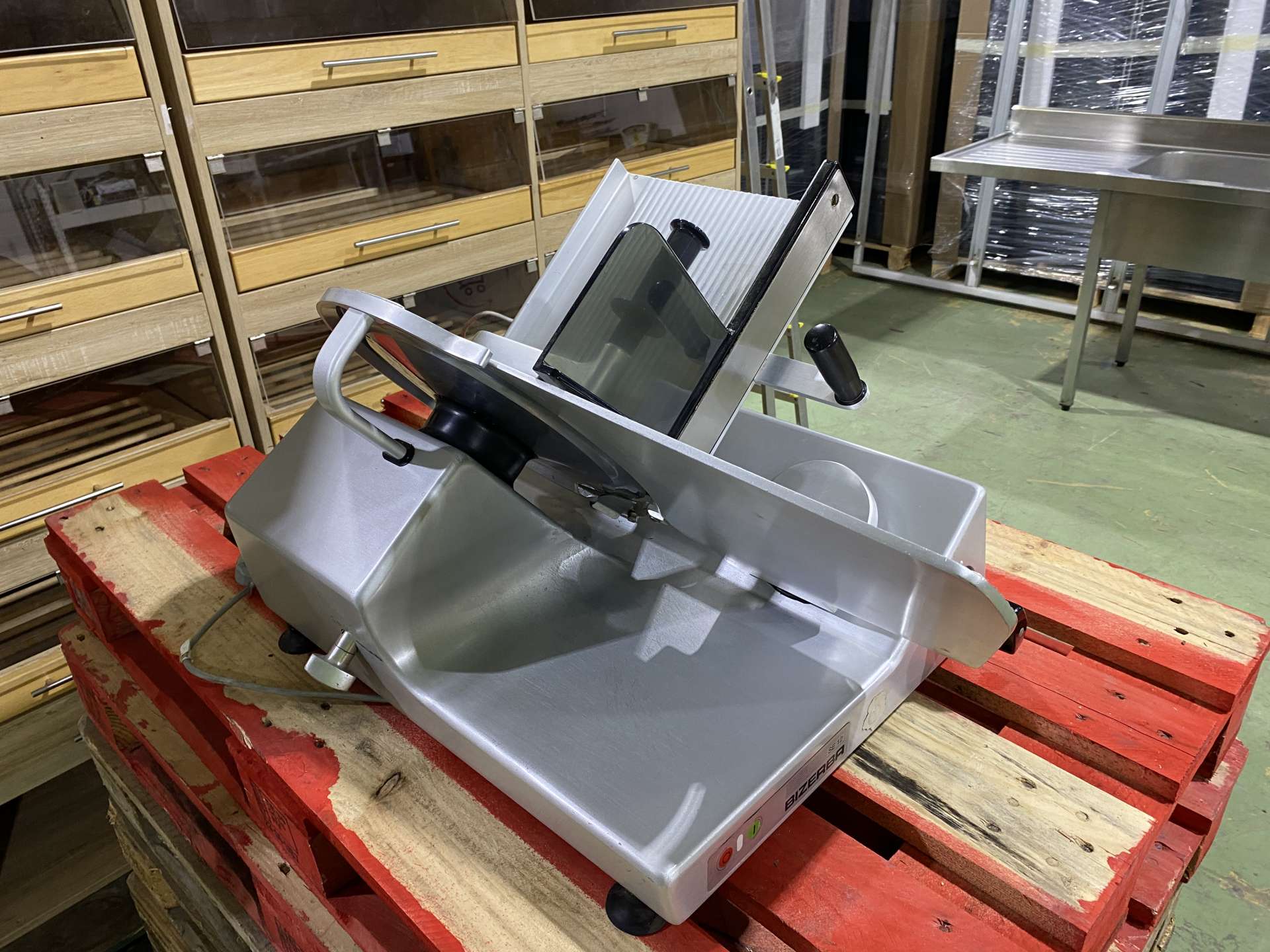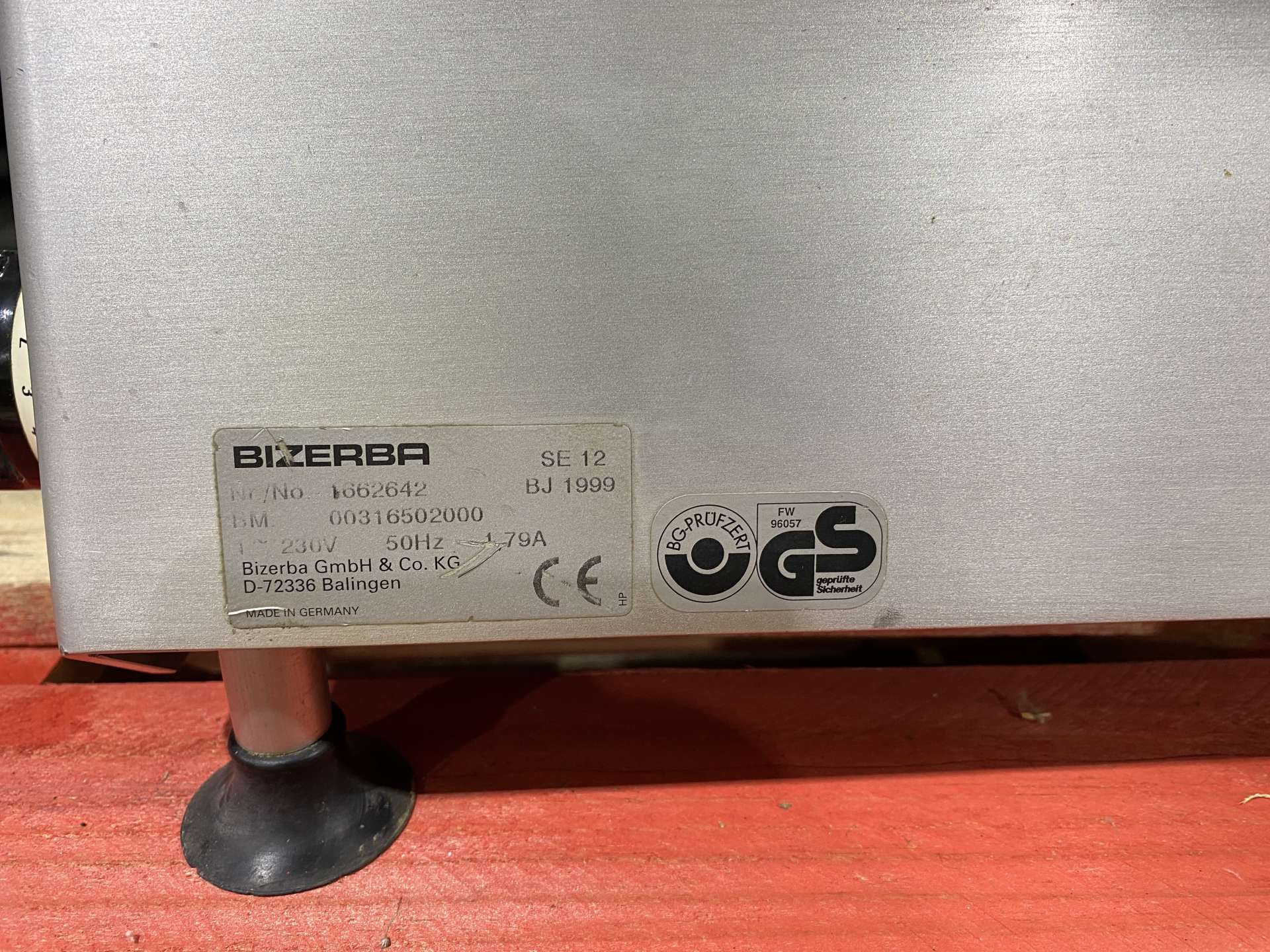Kiváló állapotú, Bizerba SE-12 mérleg . Gravitációs (döntött) kialakítás. 266 ford./perc. Szeletvastagság-állítás: 0-24 mm fokozatmentes, 0-3 mm finombeállítás.