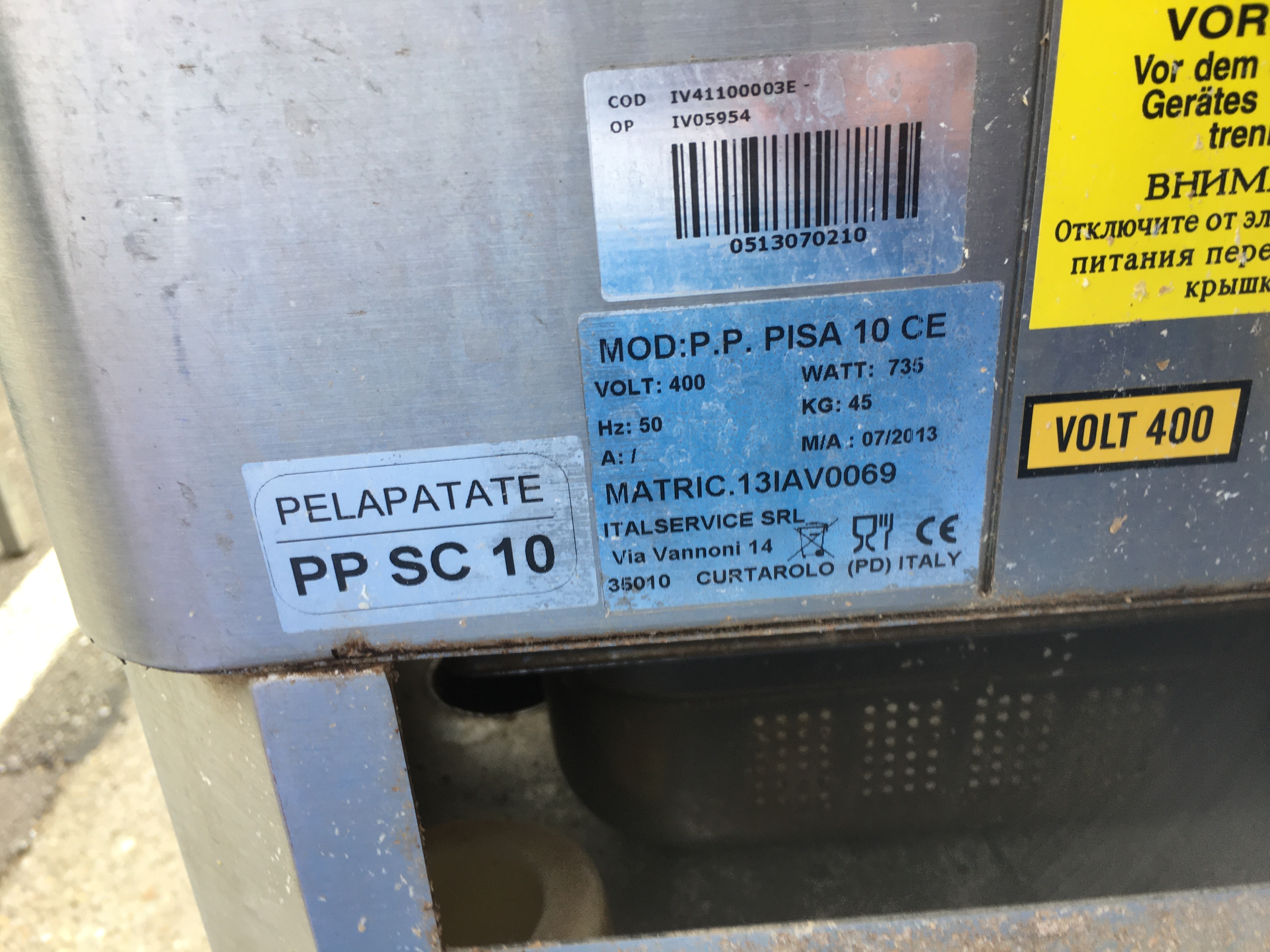Burgonyakoptató gép, rozsdamentes acélból. Kapacitás: 10-12kg. Mikrokapcsolóval a fedélen és az ajtón. A töltőnyílások fede biztonsági reteszeléssel ellátott. A koptatóelemek egyszerűen cserélhetőek. Hidegvíz csatlakozás: 1/2". Csatorna csatlakozás: átm.40mm. Kiemelhető iszapfogó betéttel. Ajtótömítést cserélni kell.