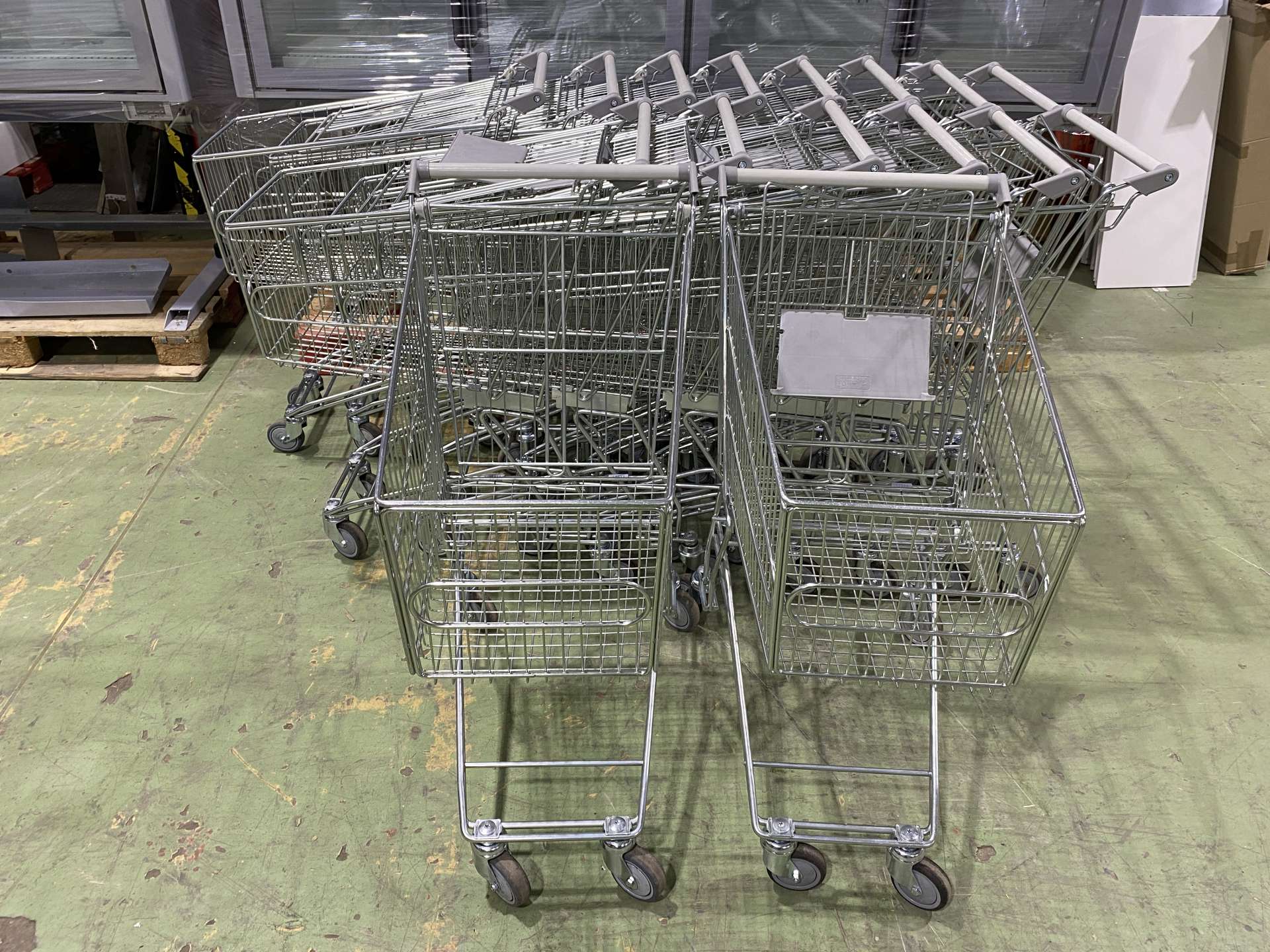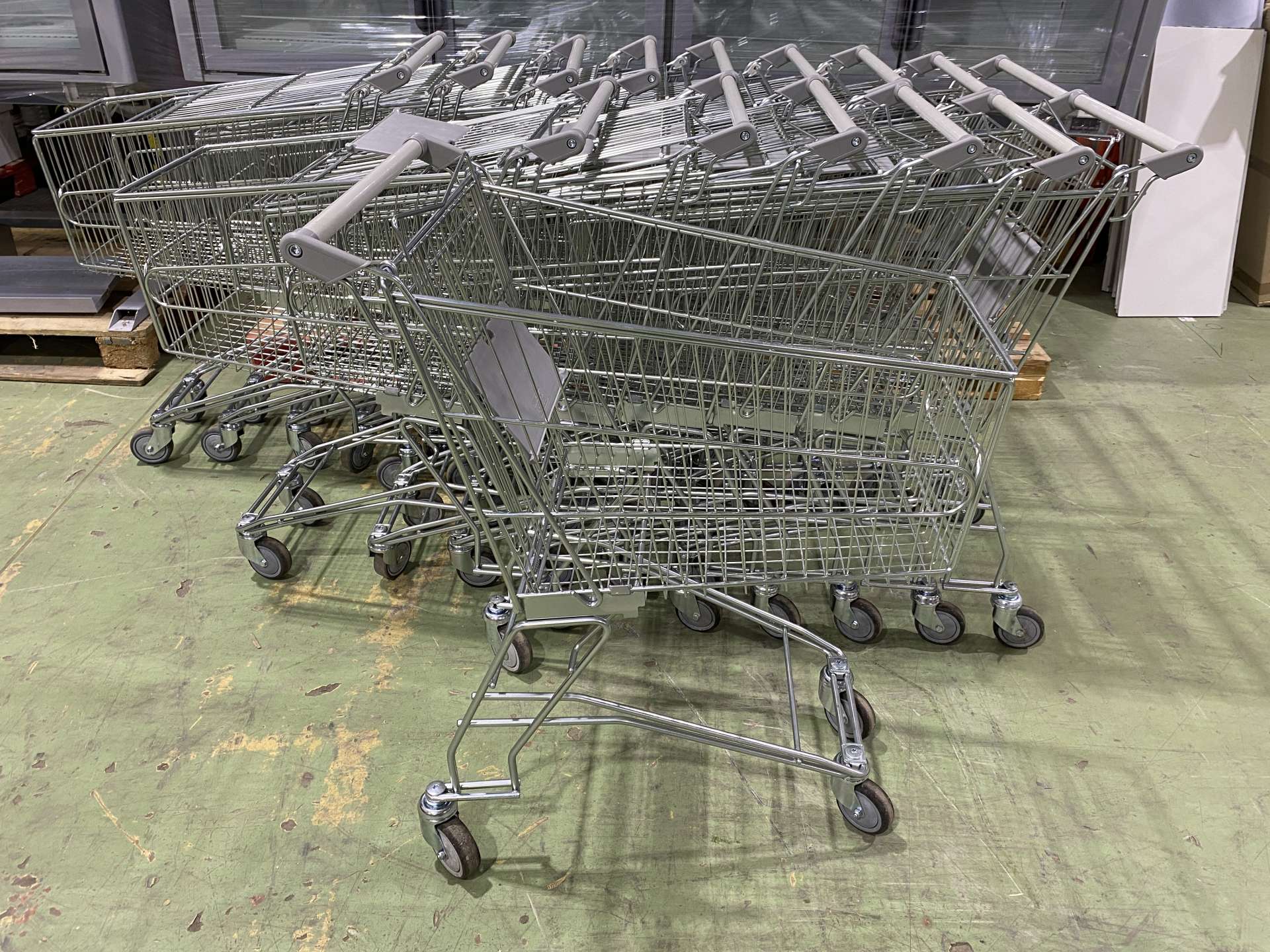 Felújított egyszínű szürke csőmarkolattal és szürke műanyagokkal szerelt horganyzott kocsik betétizár nélkül, gyereküléssel, vagy anélkül.