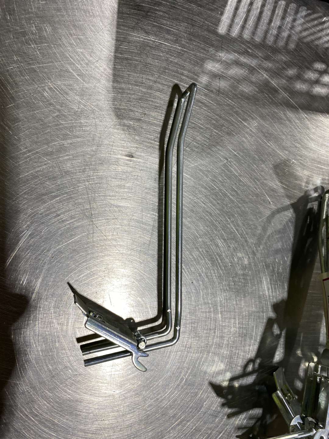 Használt krómozott, 12 cm hosszú, szimpla akasztó, ártartóval