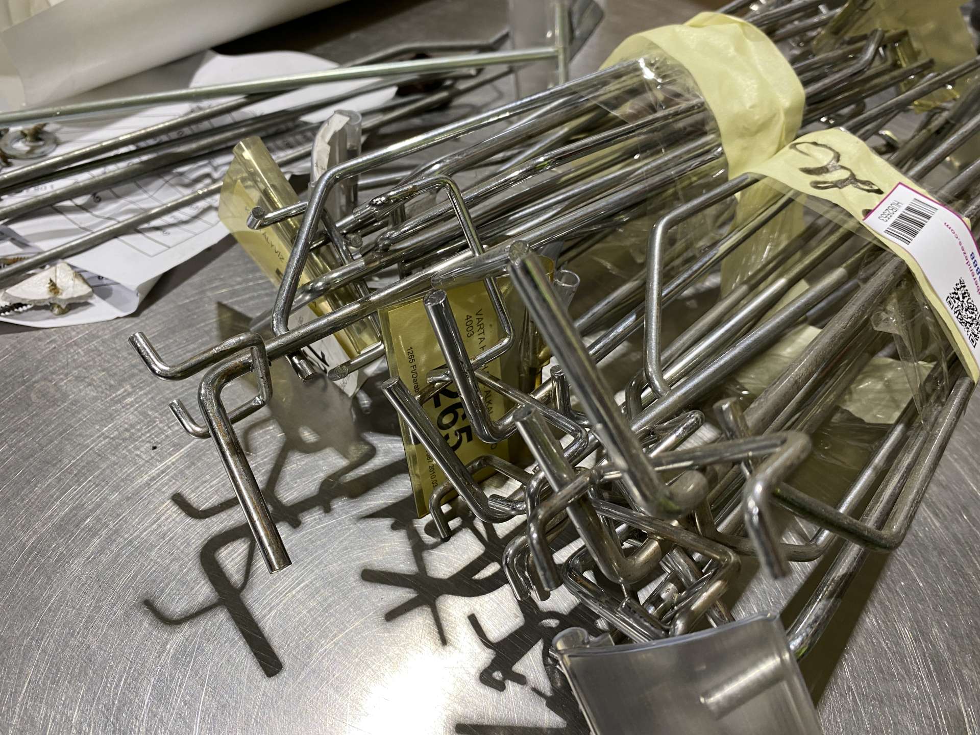 Használt krómozott, 25 cm hosszú, szimpla akasztó, ártartóval