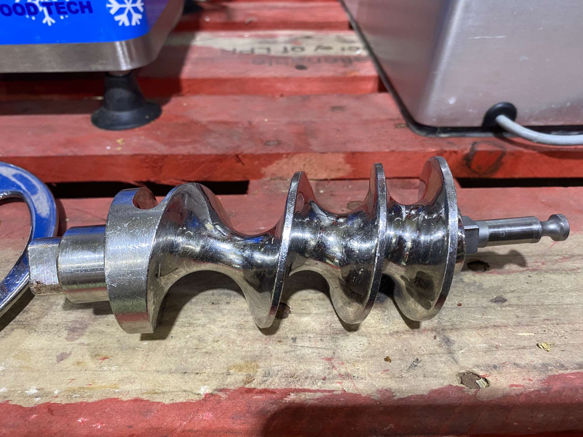 AMB Food Tech - T22 Polo hűtött fejes húsdaráló. Olasz gyártány, rozsdamentes acél házban, biztonsági kapcsolóval, hűtőventilátorral, hűtött inox garattal és csigával, rozsdamentes késsel és tárcsával, hűtött rozsdamentes etetőtálcával. Óránkénti teljesítmény: 280 kg hús / óra Teljesítménye: 0,9 Kw (1,2 LE) Tápfeszültség: 230/400 V 50 Hz Méretek: 300 x 460 x 590 mm. Gyártási év: 2018.