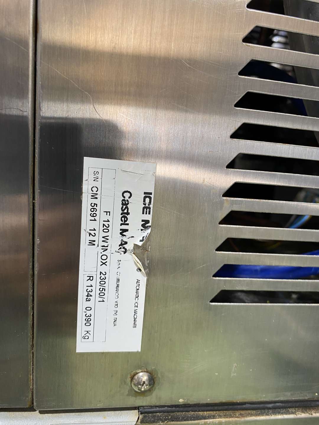Jégdarakészítő gép: Icematic F 120 W (INOX 230/50/1) rozsdamentes acélból. Beépített léghűtéses aggregáttal. Teljesítménye 120 kg / 24 óra. Kevésbé jól szellőző, vagy az átlagosnál magasabb hőmérsékletű helyen is tökéletesen működik.