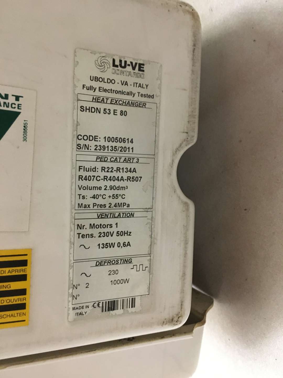 LU-VE SHDN 53 E 80 mennyezeti elpárologtató korrekt állapotban. Kb. 12 m2 tőkehús kamrában volt felszerelve.
