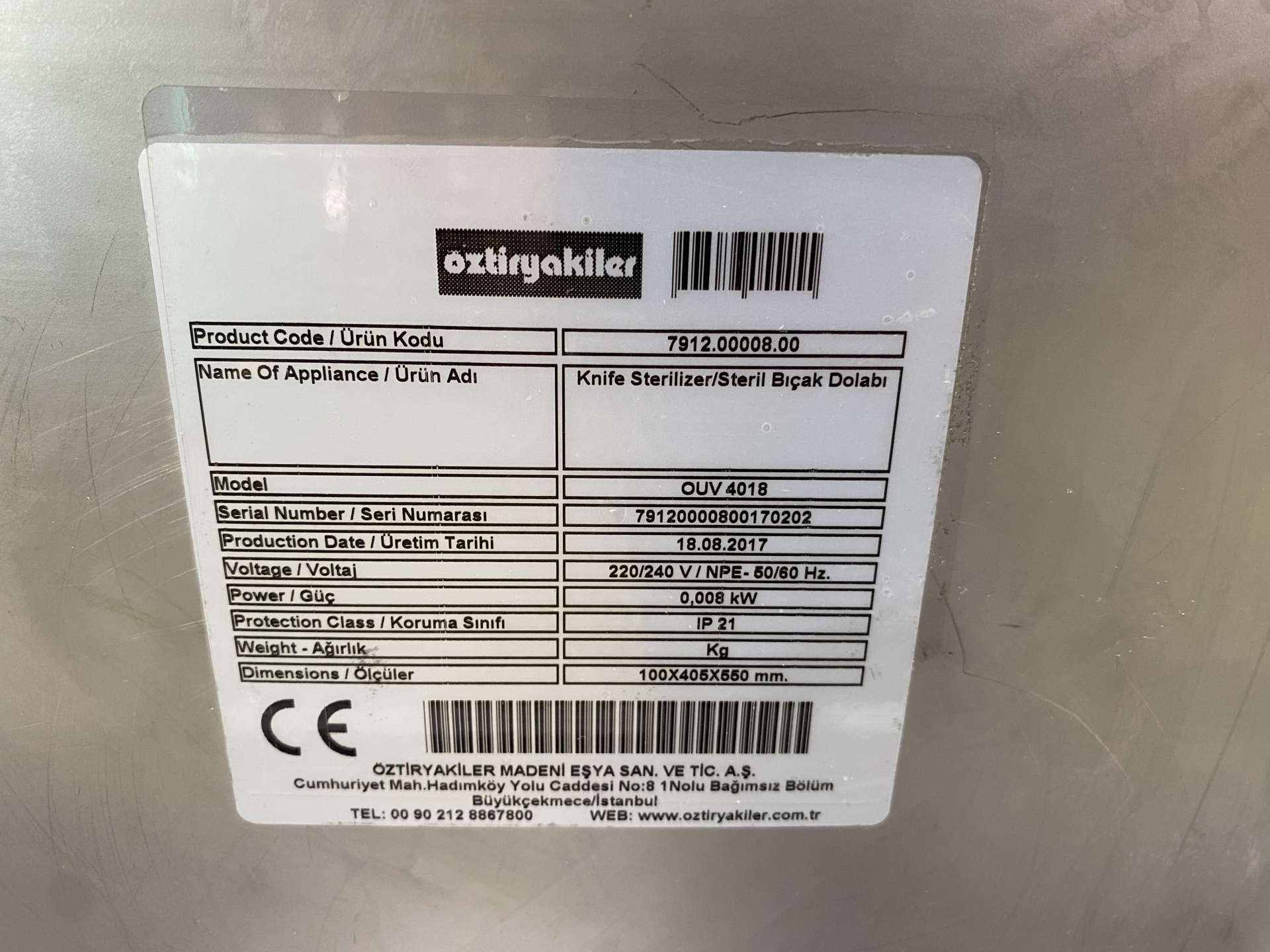 Özti késfertőtlenítő UV-s