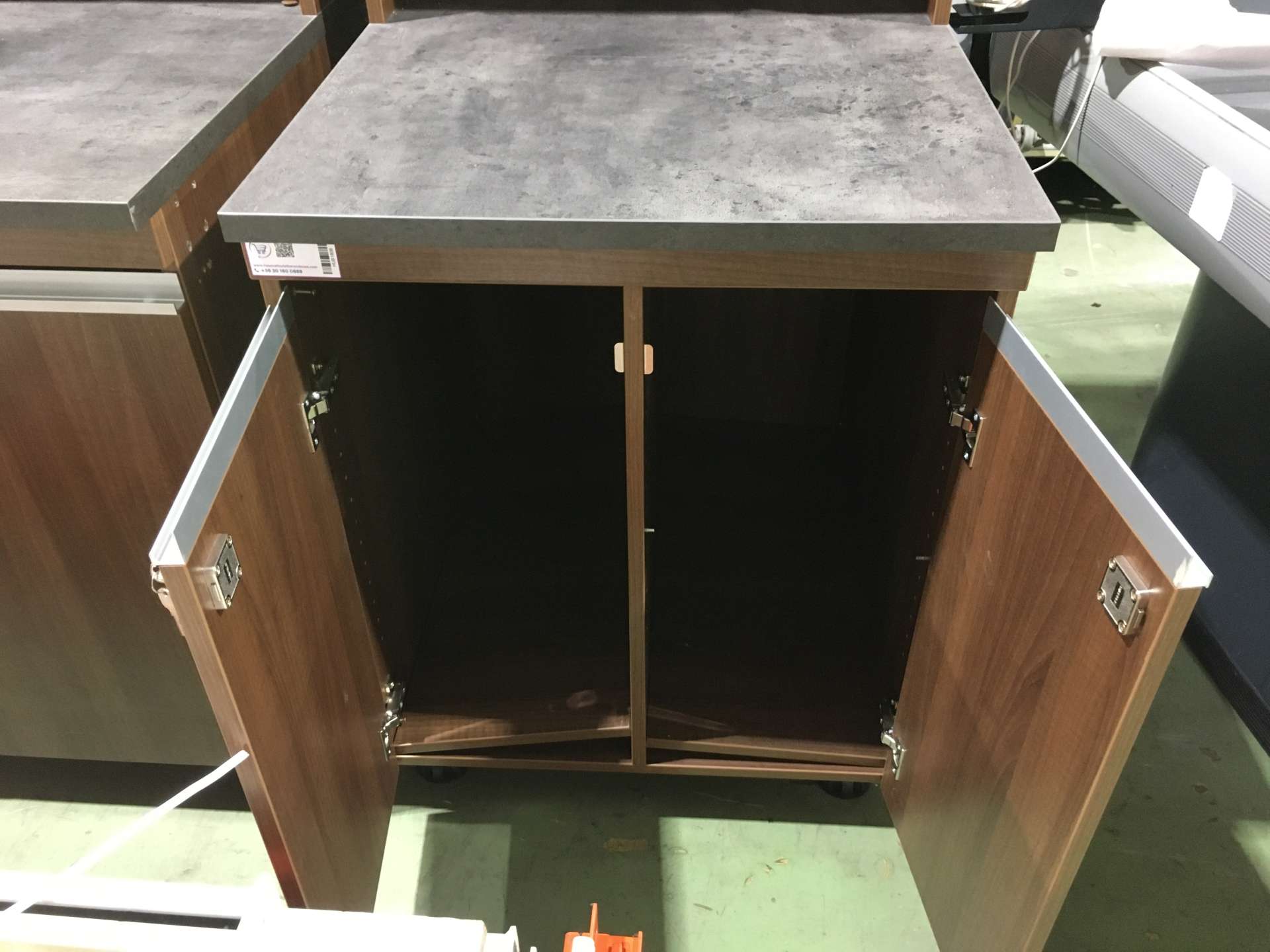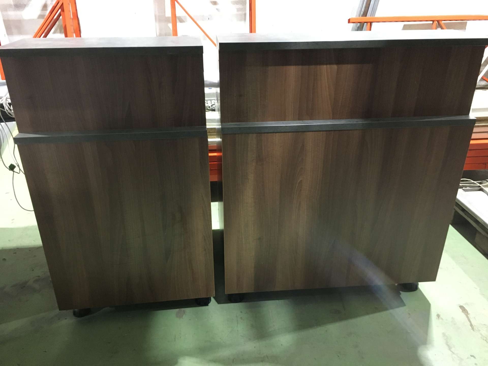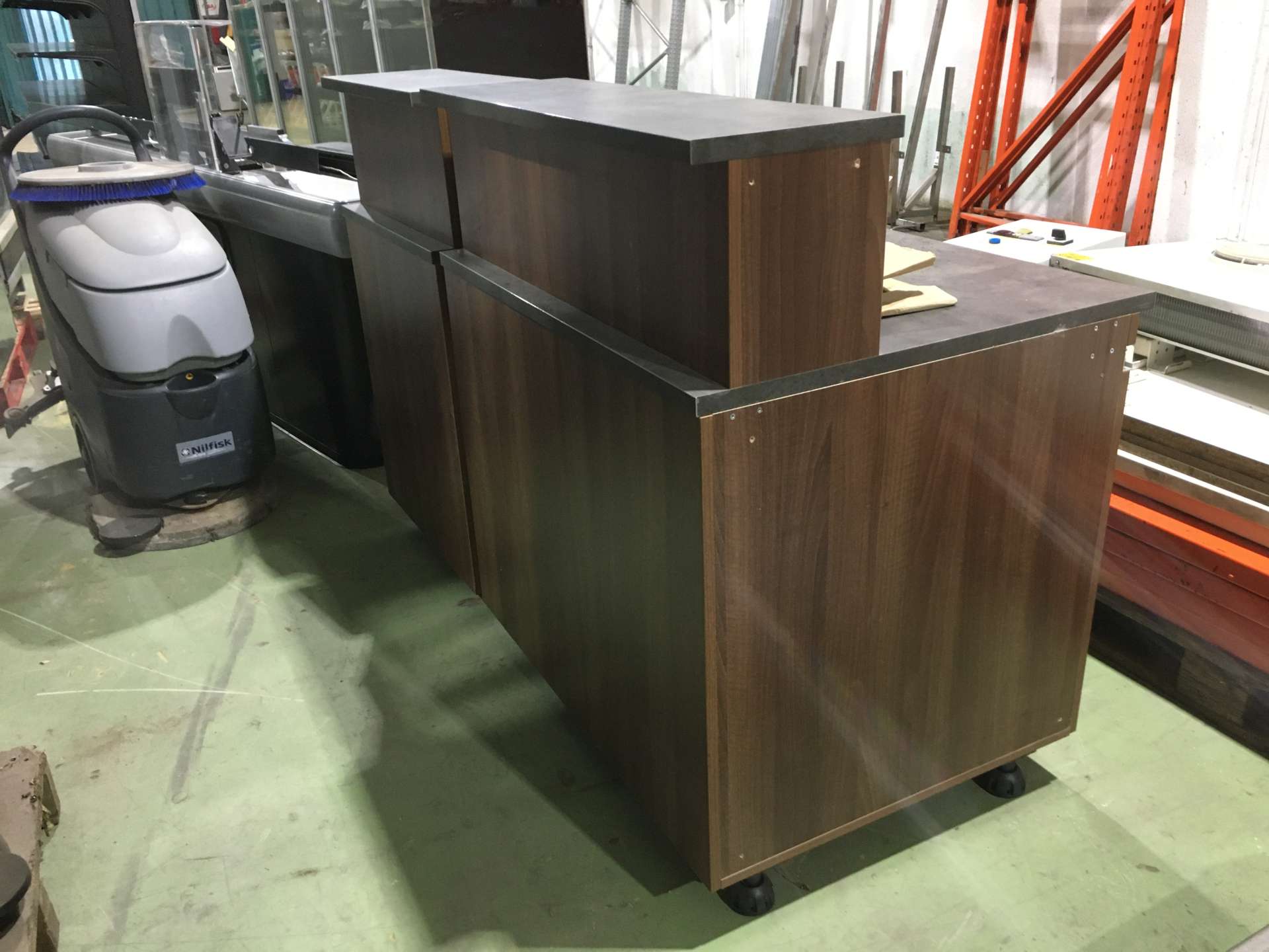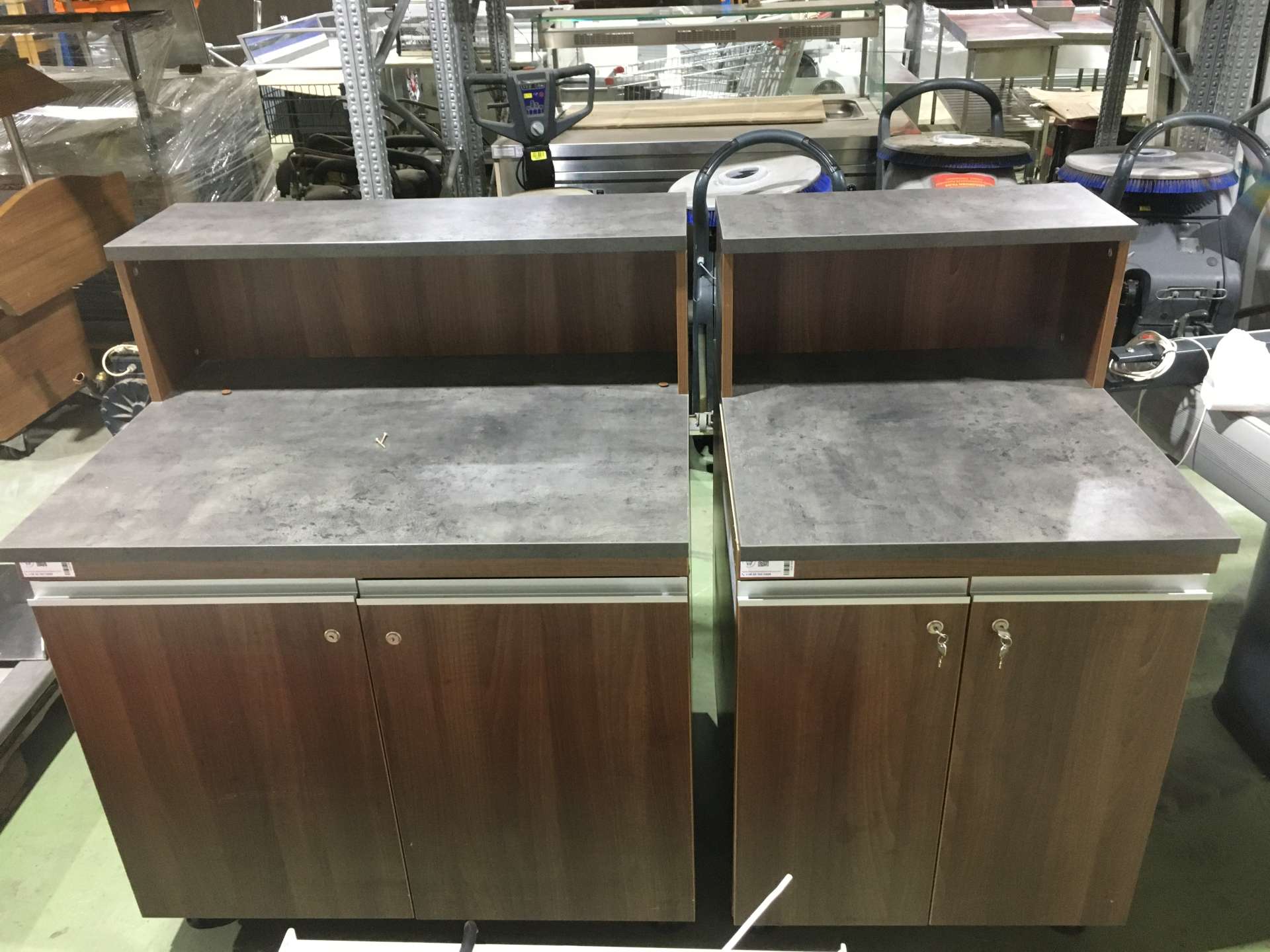 Újszerű bútorok, melyek pultként, vagy munkaasztalként használhatóak. Mindkettő munkalapra épített háromoldalról zárt felső tárolóval rendelkezik, melyek - pultok esetében - vevői könyöklőként is funkcionálhatnak Alsó zárhazó szekrények, köztes polcok. A szekrény kulcsai hiányoznak.