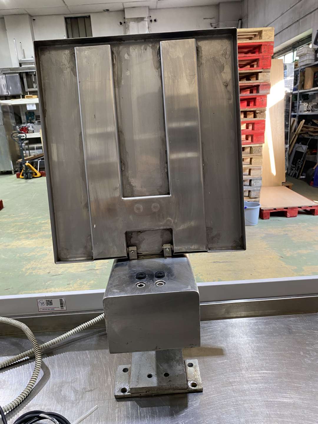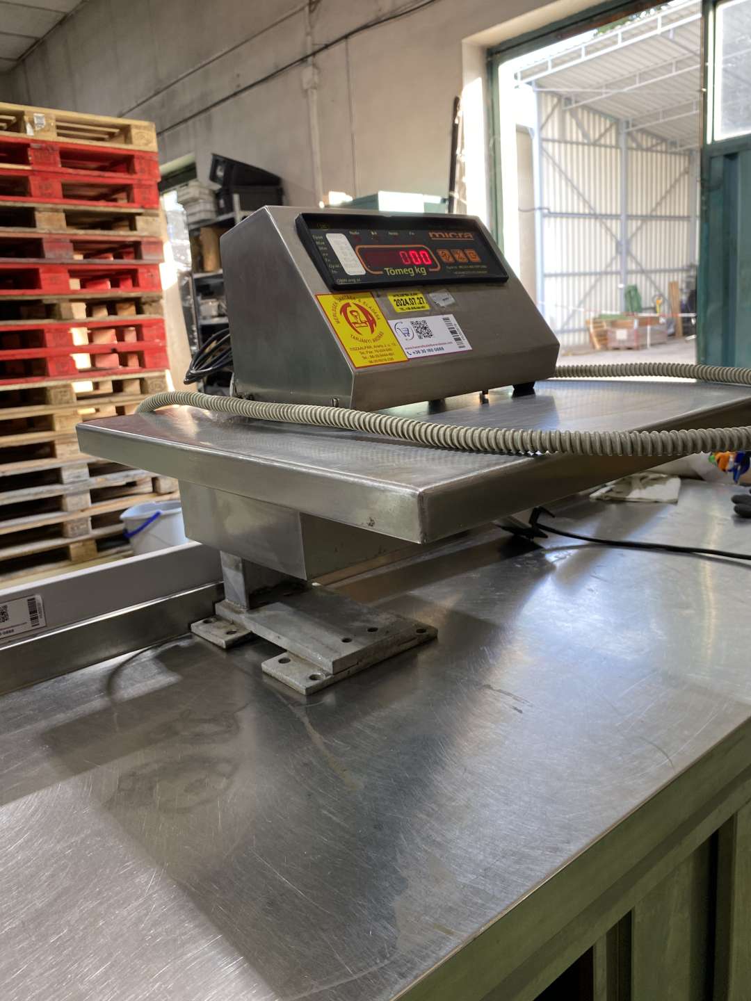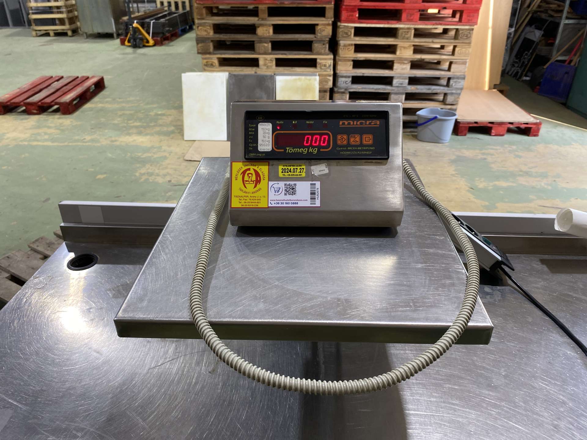 Mázsa, mérleg, ládamérleg, "törpemérleg" felhajtható platform. Padlóhoz rögzíthető. Méréshatár 150 kg.