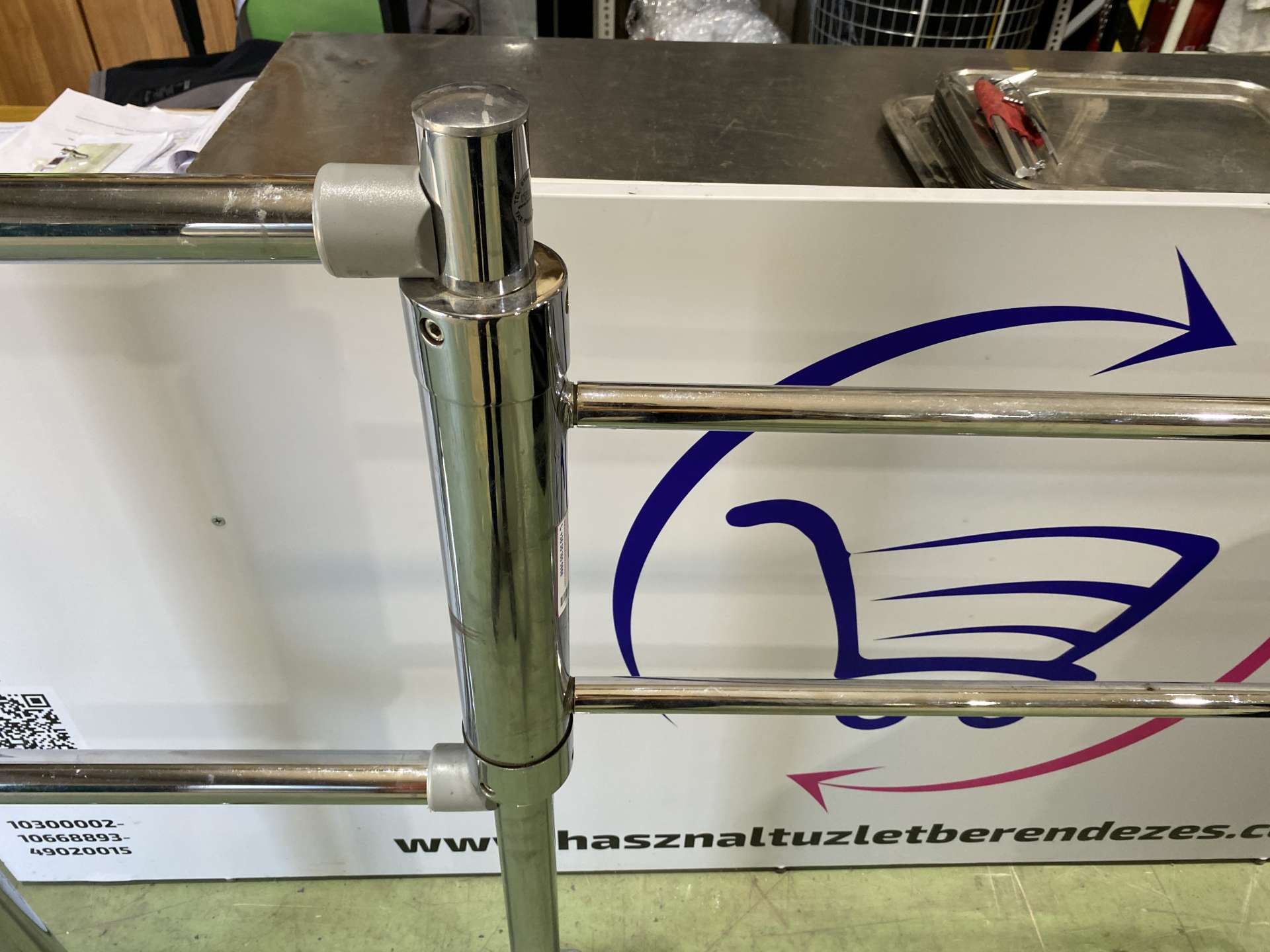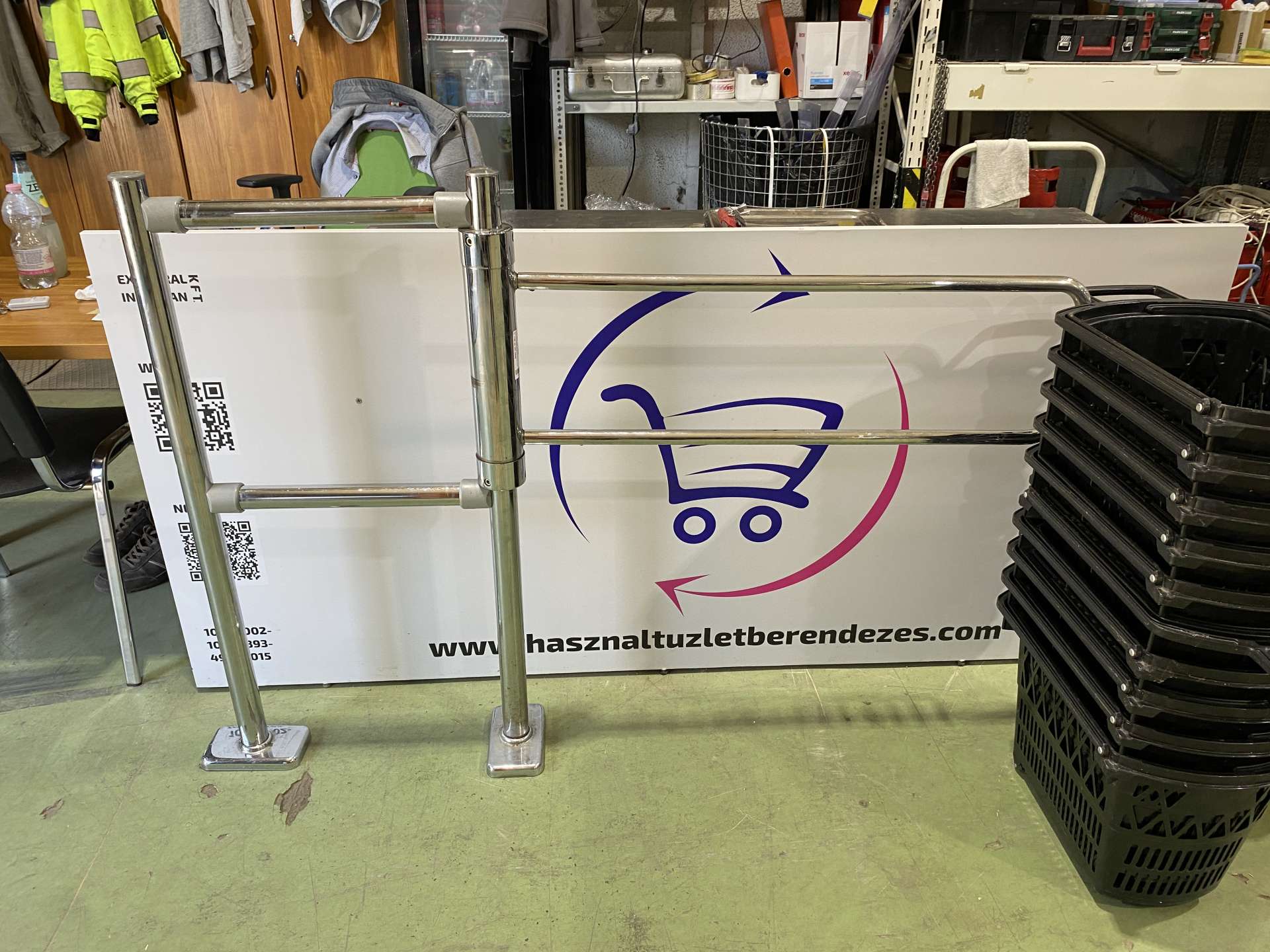 Egykaros CP króm mechanikus vevőbeengedő kapu. 102 cm széles, 110 cm magas oszloppal. Padlóhoz rögzíthető. Nyitókar hossza fix. + Kiegészítő elem 50 cm. Teljes szélesség 102+50 cm.
