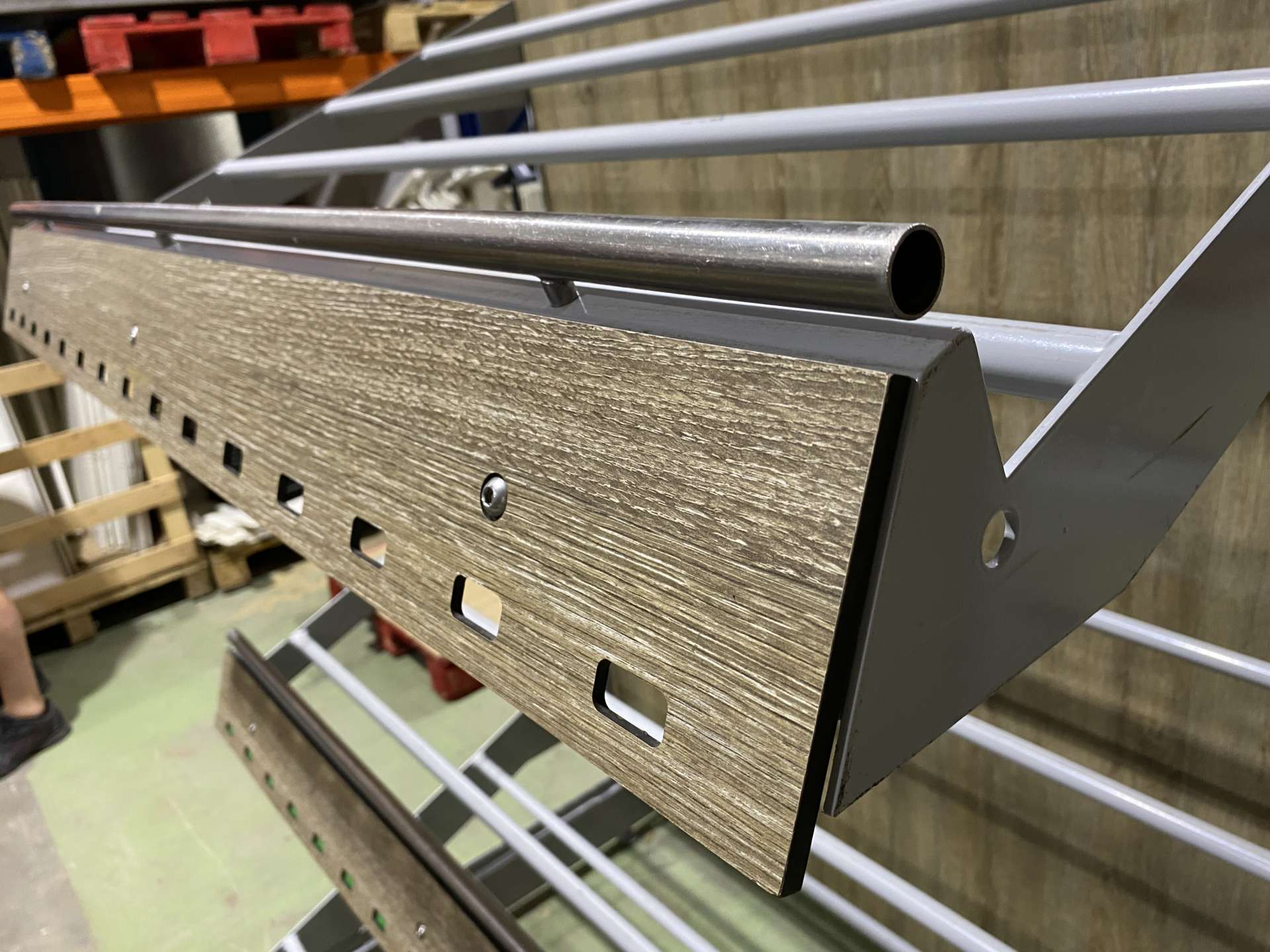 Kiváló állapot, RAL 7004 (szürke) váz, világos tölgy bútorlappal és fronttal.