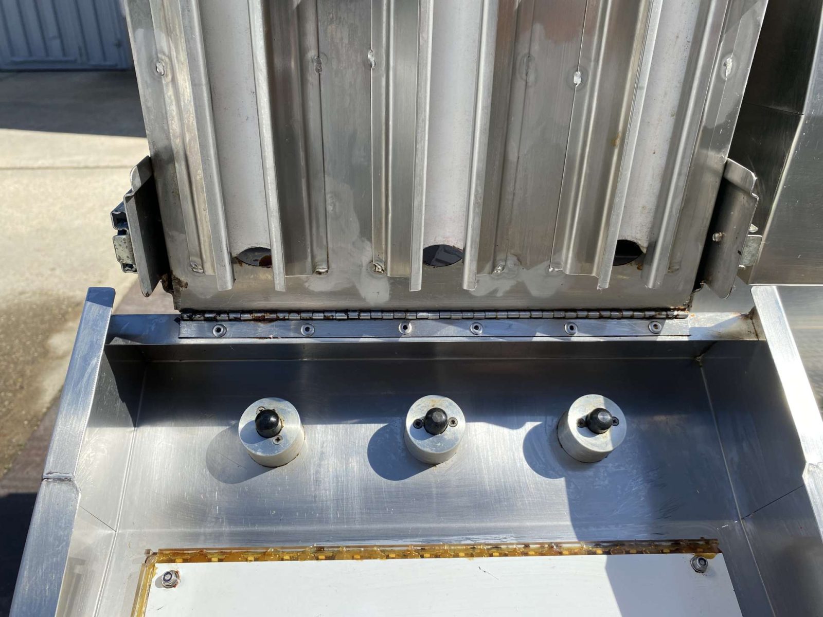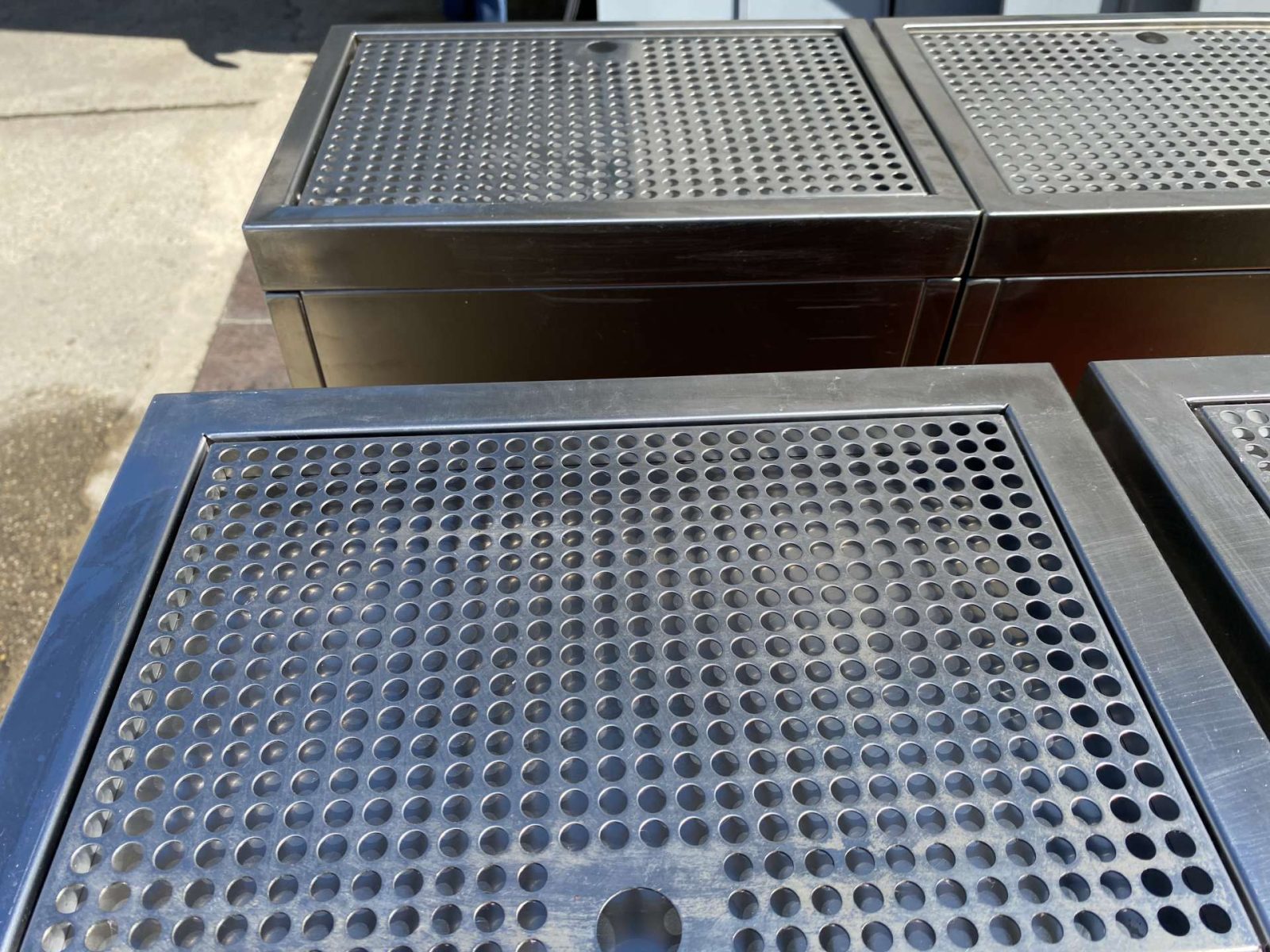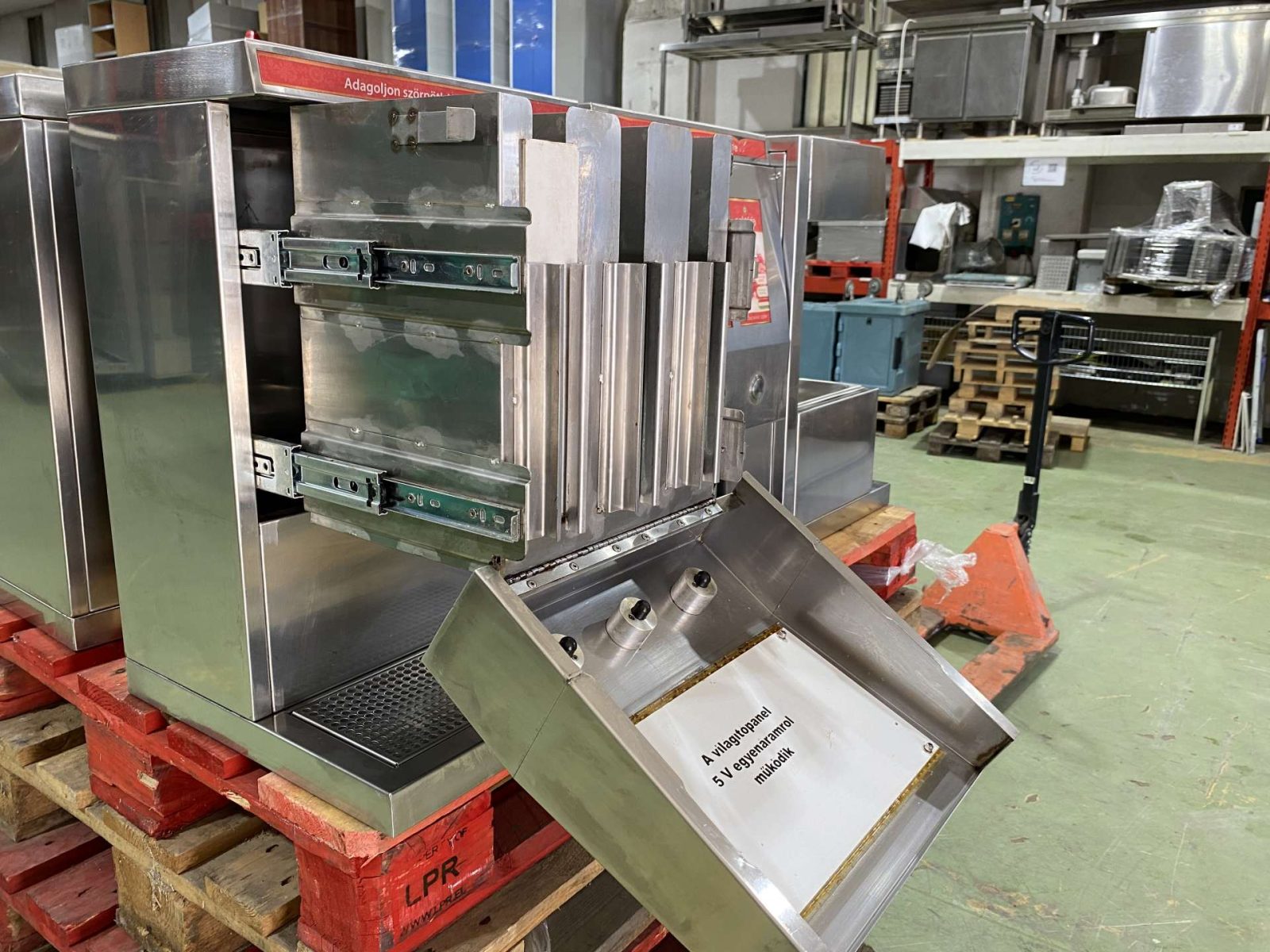 Gravitációs rendszerű szörpadagoló berendezés. 4 darab gép készleten, minden berendezésbe 3 bag in box zsák helyezhető el. Mechanikus adagolás, mely törtéhet kiszolgáló és önkiszolgáló rendszerben. Branding igény szerint változtatható, minden felirat cserélhető. 100% rozsdamentes kivtel. Asztalra helyezhető, a cseppvízelvezető csonk csatornába beköthető. Kemelhető rozsdamentes tálcákkal. Külön hirdetésben gyümölcs és jégtartó.