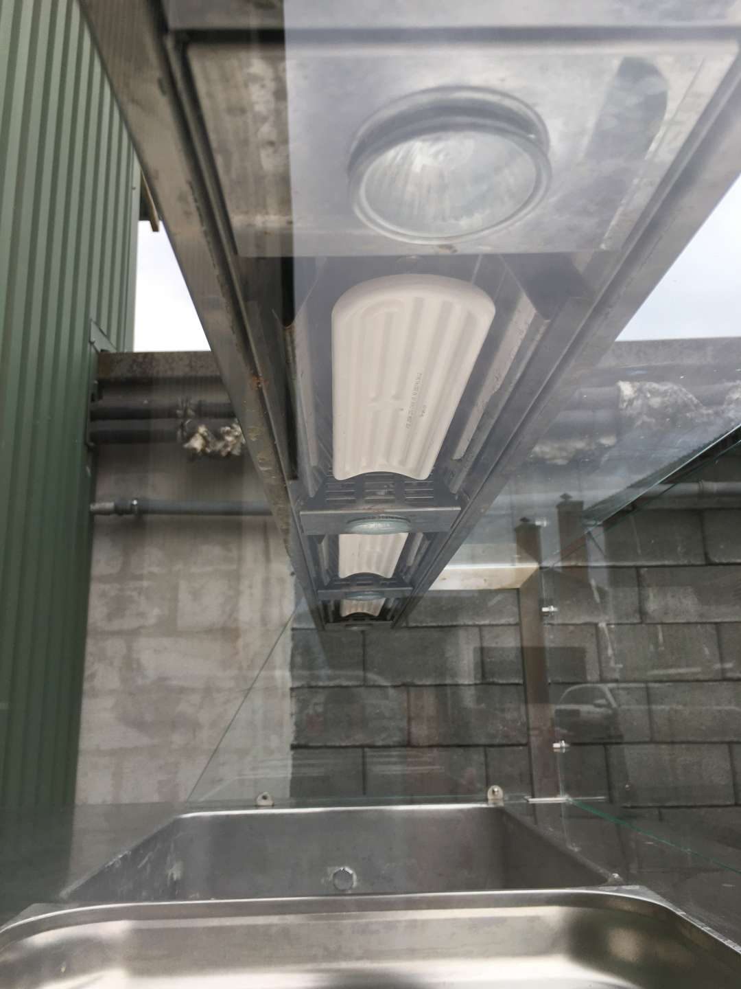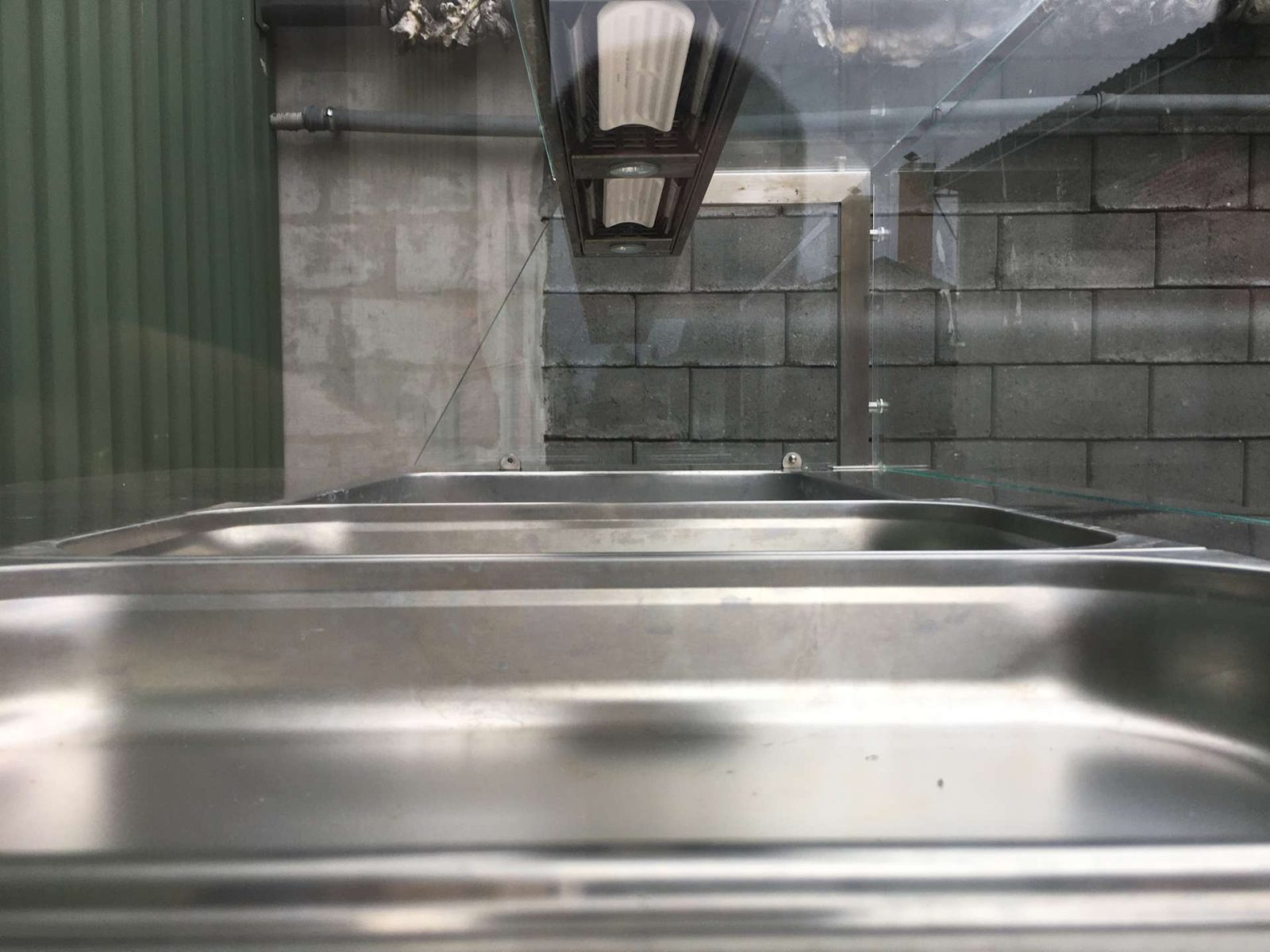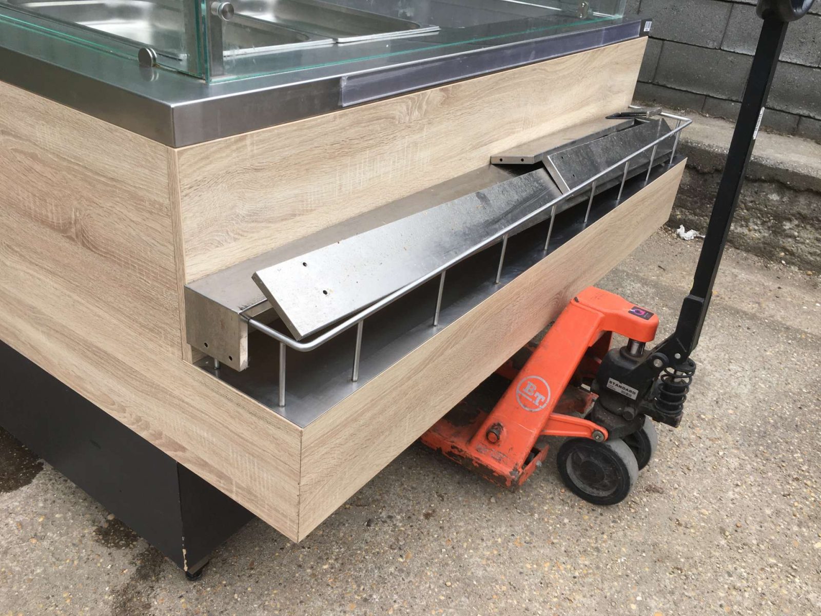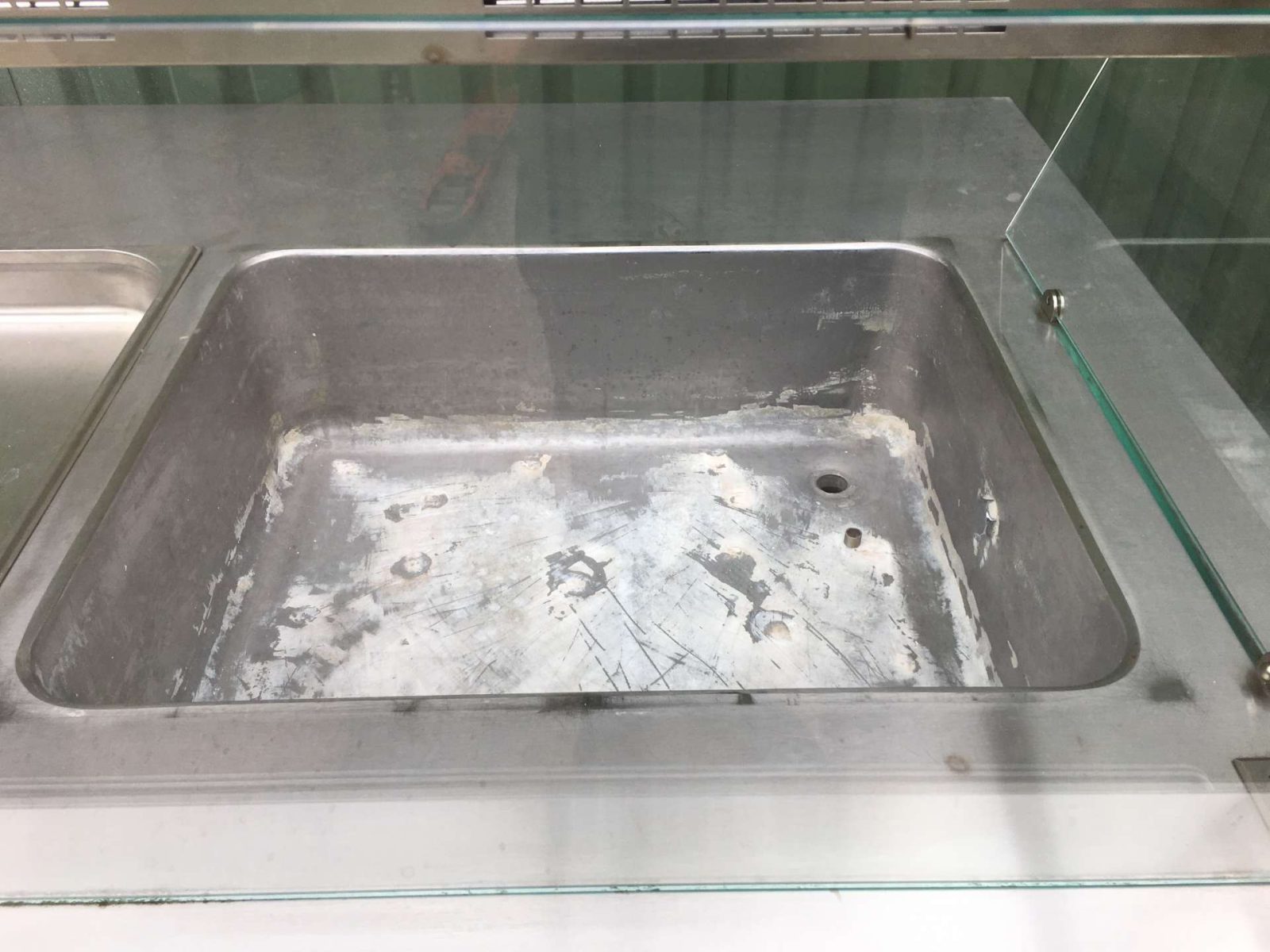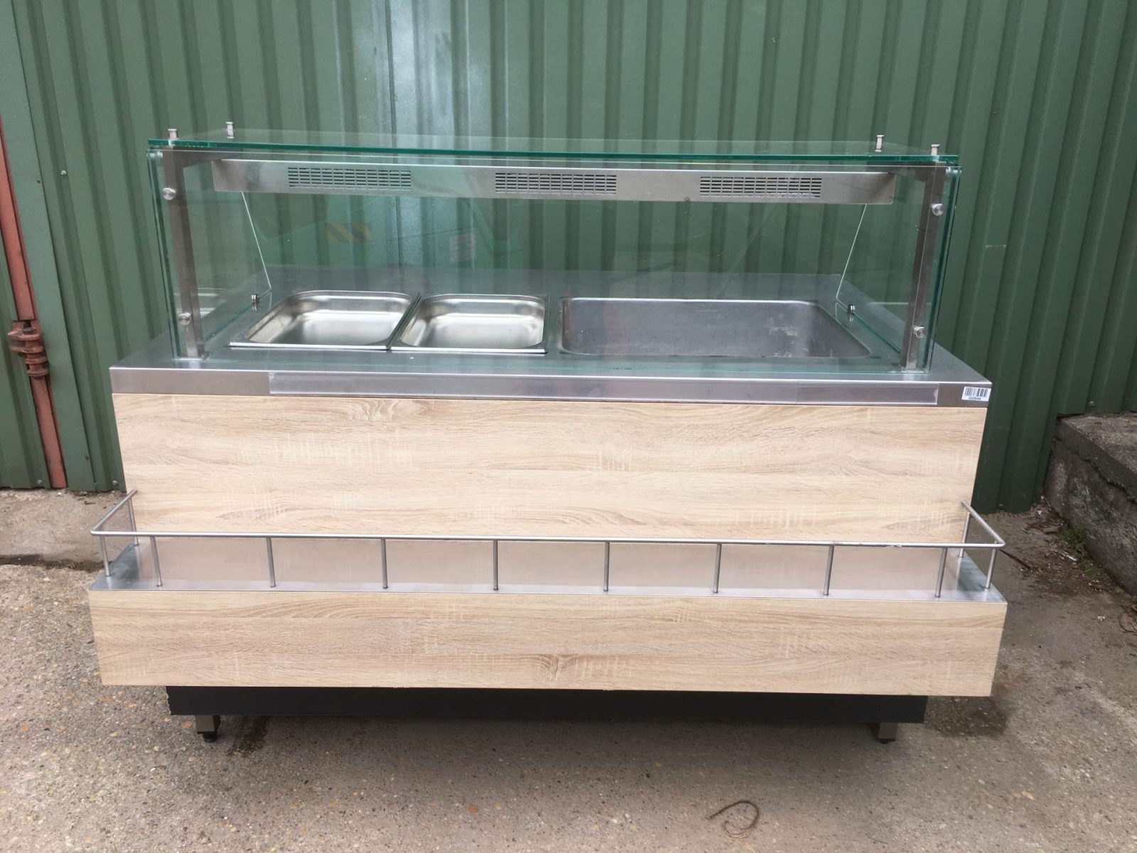 Egyedi bútor, 4 darab GN 1/1-es ( vagy ennél arányosan több kisebb méretű) GN edény helyezhető el benne. Vízkőtelenítve, letakarítva. Feltöltő,- és a leengedőcső víz,- csatornahálózatra ráköthető. Egy hőfokállító gomb hiányzik, pótolható. Hőfokállítás e-nélkül is lehetséges.