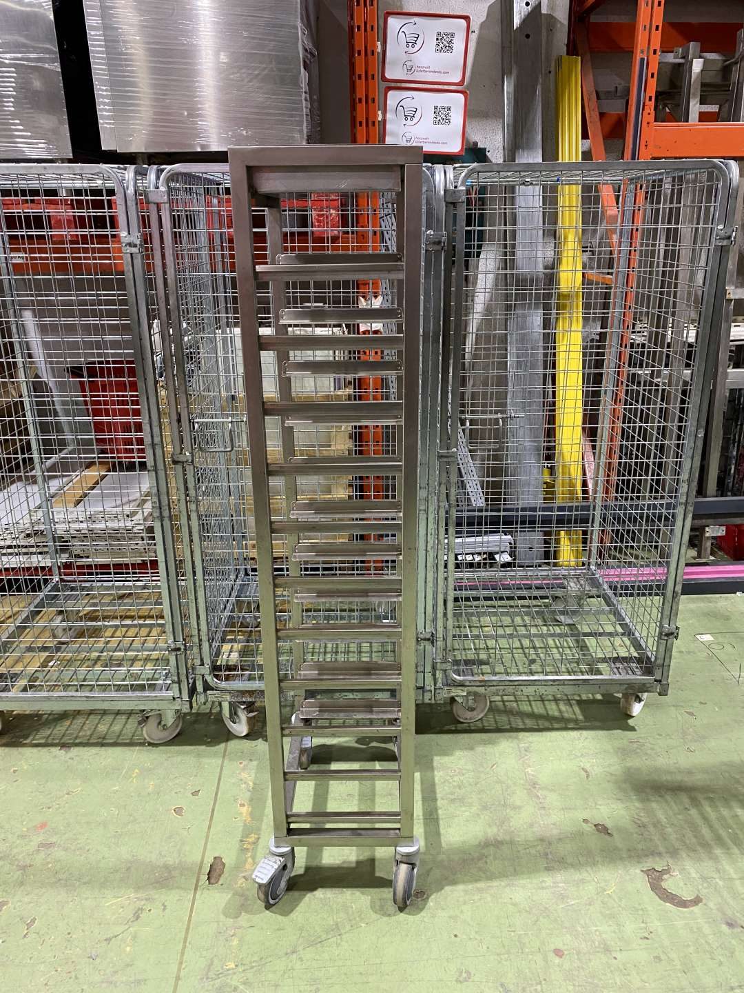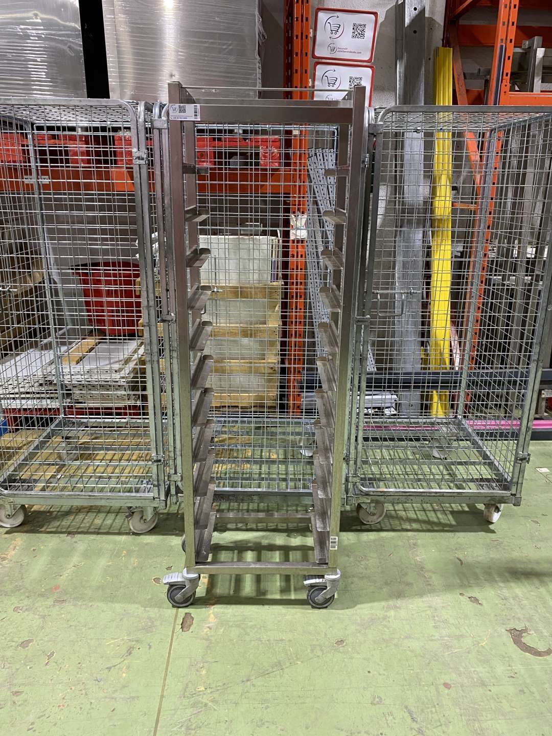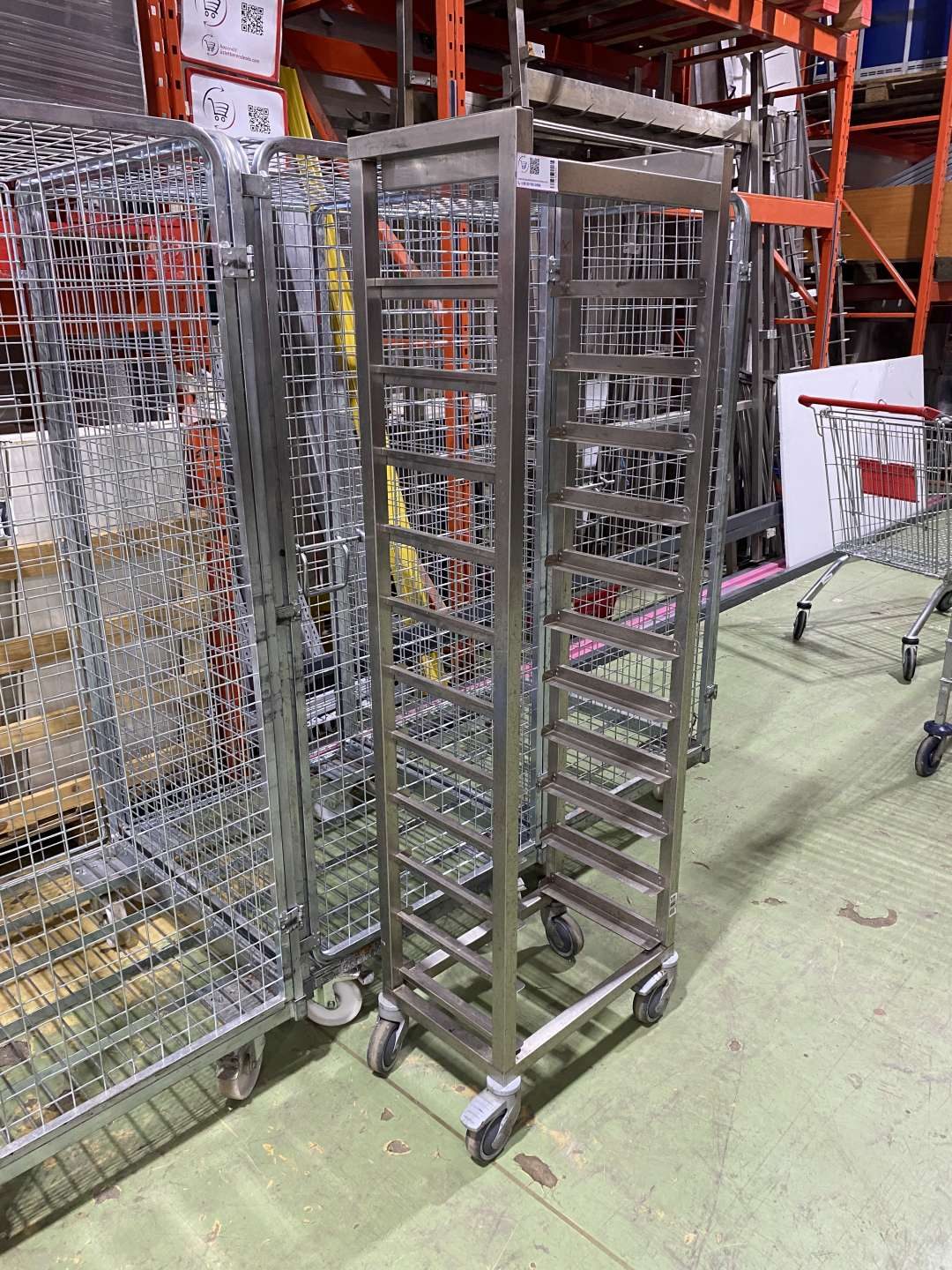 Gurulós rozsdamentes tálcagyűjtő kocsi. Elhelyezhető tálcák száma: 11 darab. Tálcaméret: 40*30 cm.