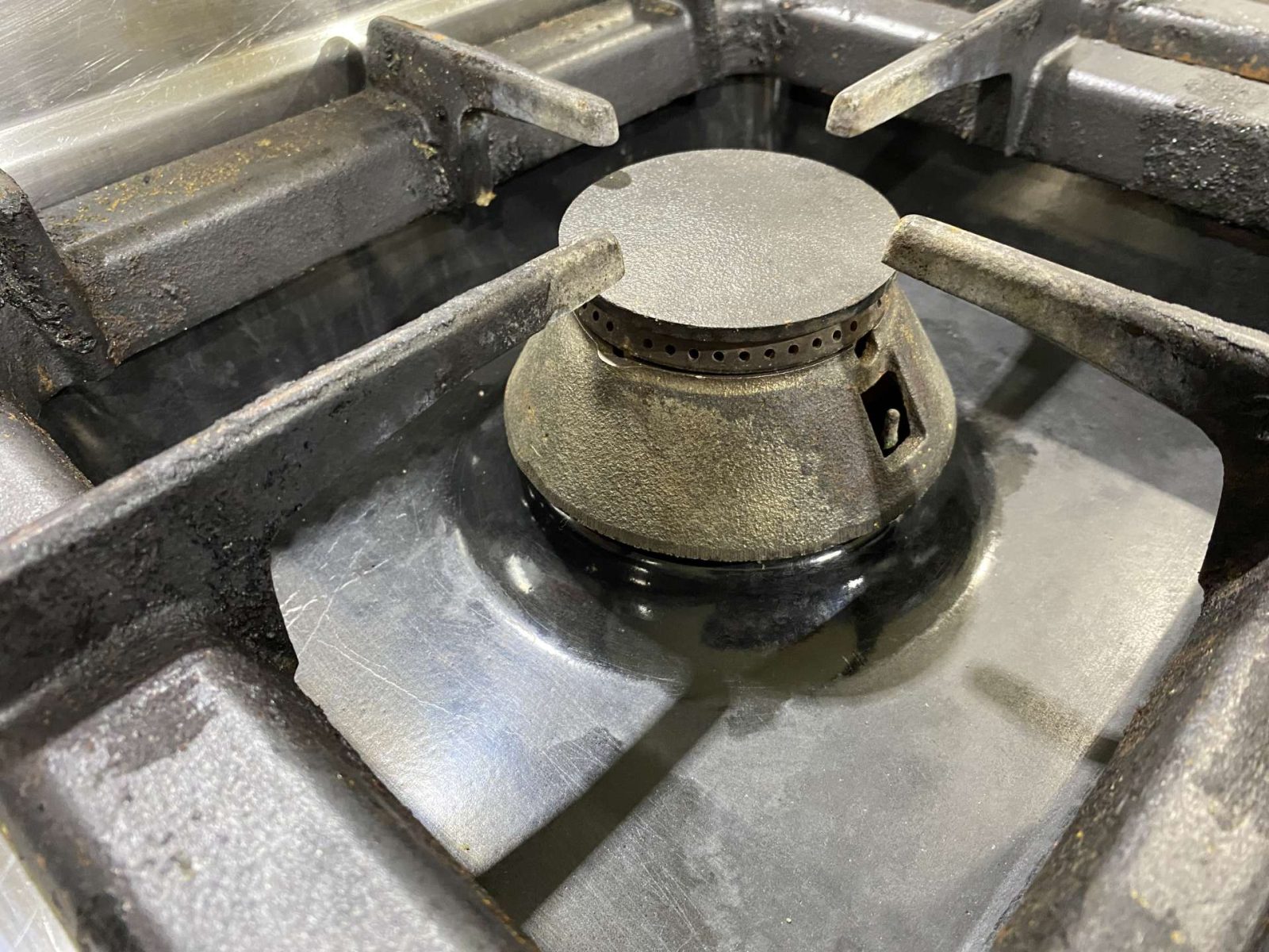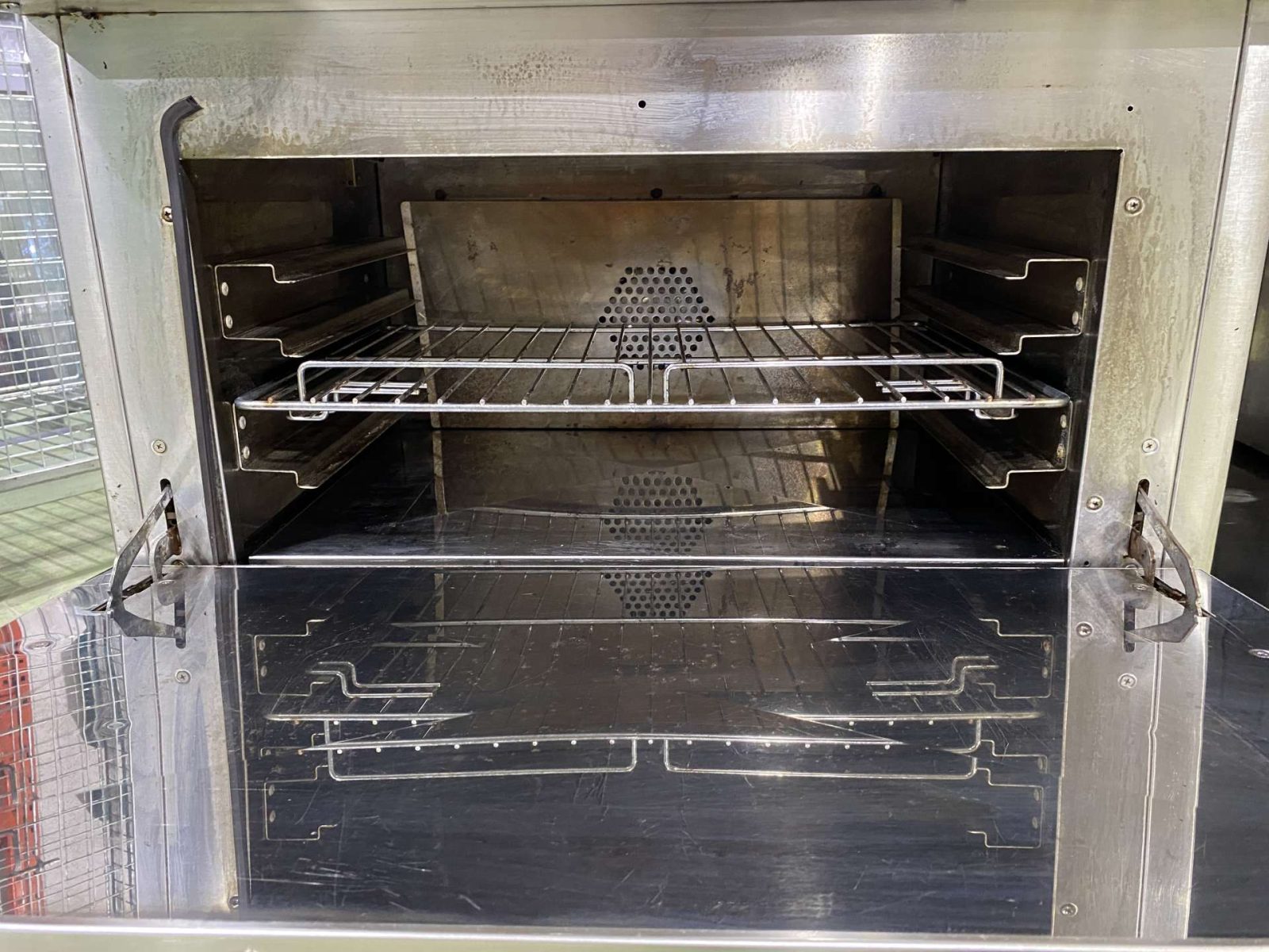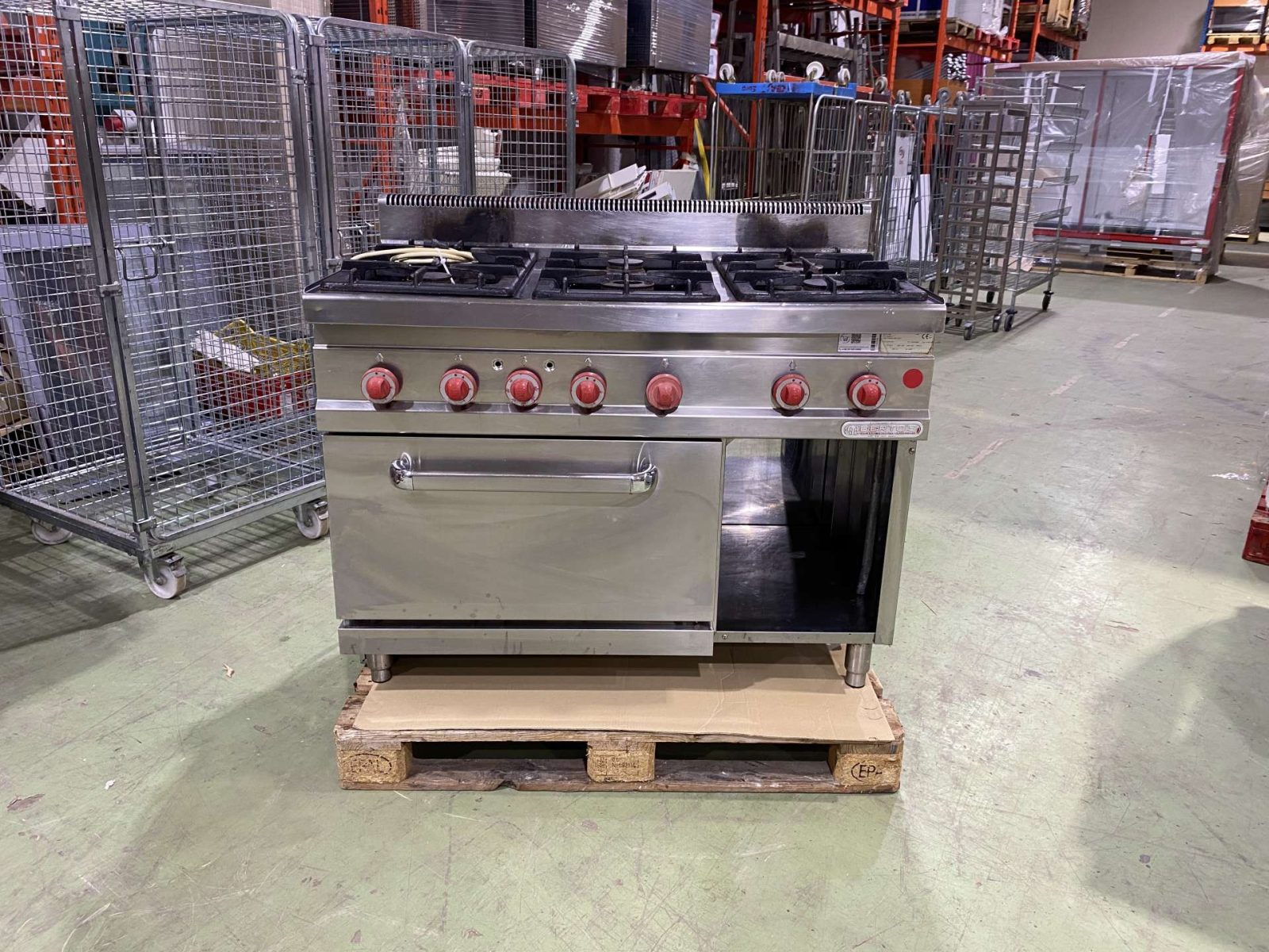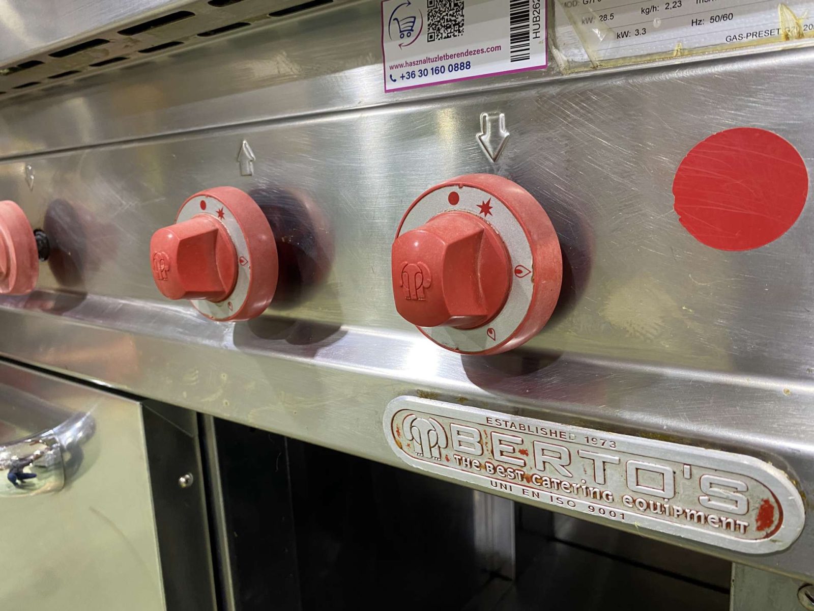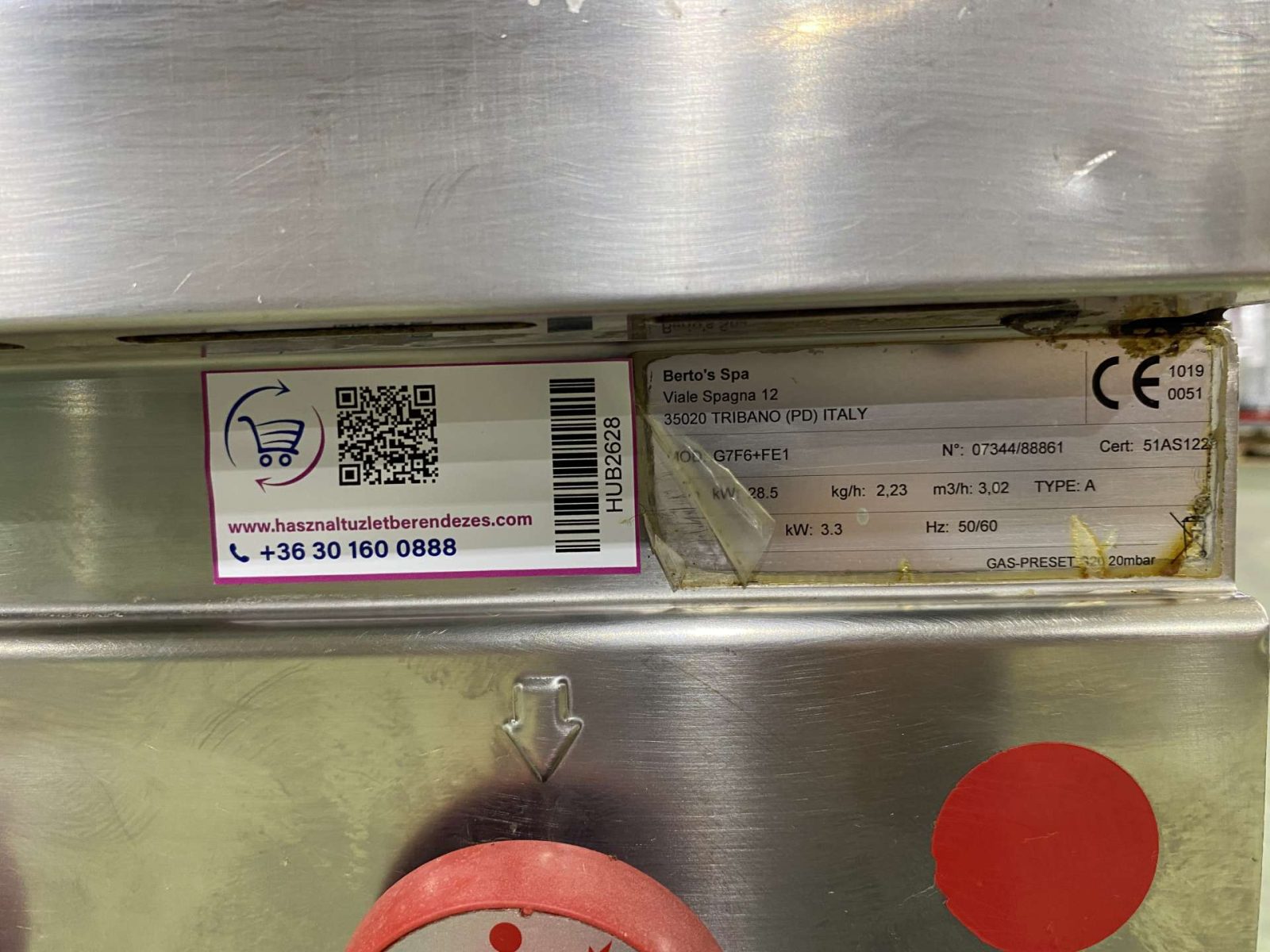 Berto's gyármányú és G7F6+FE1 típusú 6 égős gáztűzhely, elektromos légkeveréses sütővel.